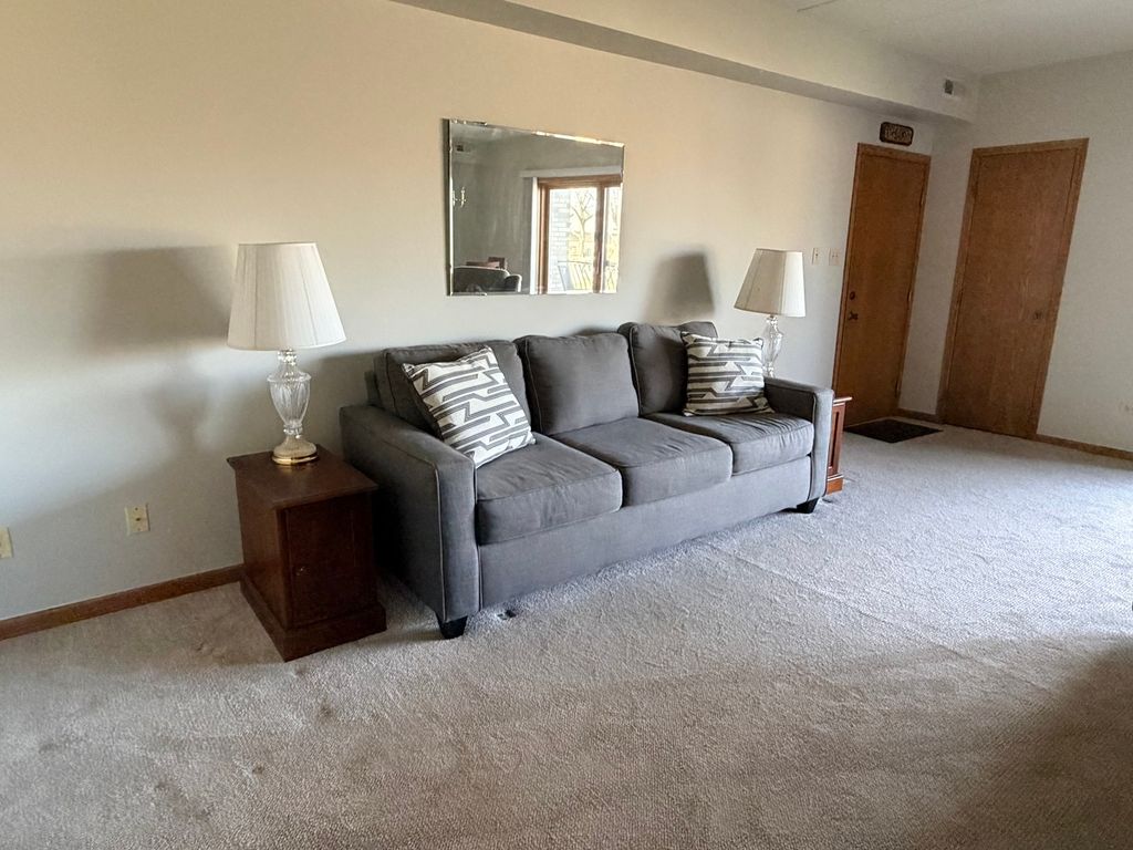 Freshly updated and move-in ready, this clean and recently painted two-bedroom, two-bath condo offers comfortable living on the main level for easy access and convenience. The bright, well-maintained interior creates a welcoming atmosphere, perfect for relaxing or entertaining. The living room and dining room offer a view of the front lawn. Eat in kitchen with room for a table has a new stove and microwave (2025), pantry and plenty of cabinets and counter space. Ideally situated in a convenient location close to shopping, dining, and everyday essentials, this home also features a rare and practical find, a two-car garage located directly across from the back entry, making parking and unloading effortless. A perfect blend of comfort, convenience, and low-maintenance living.