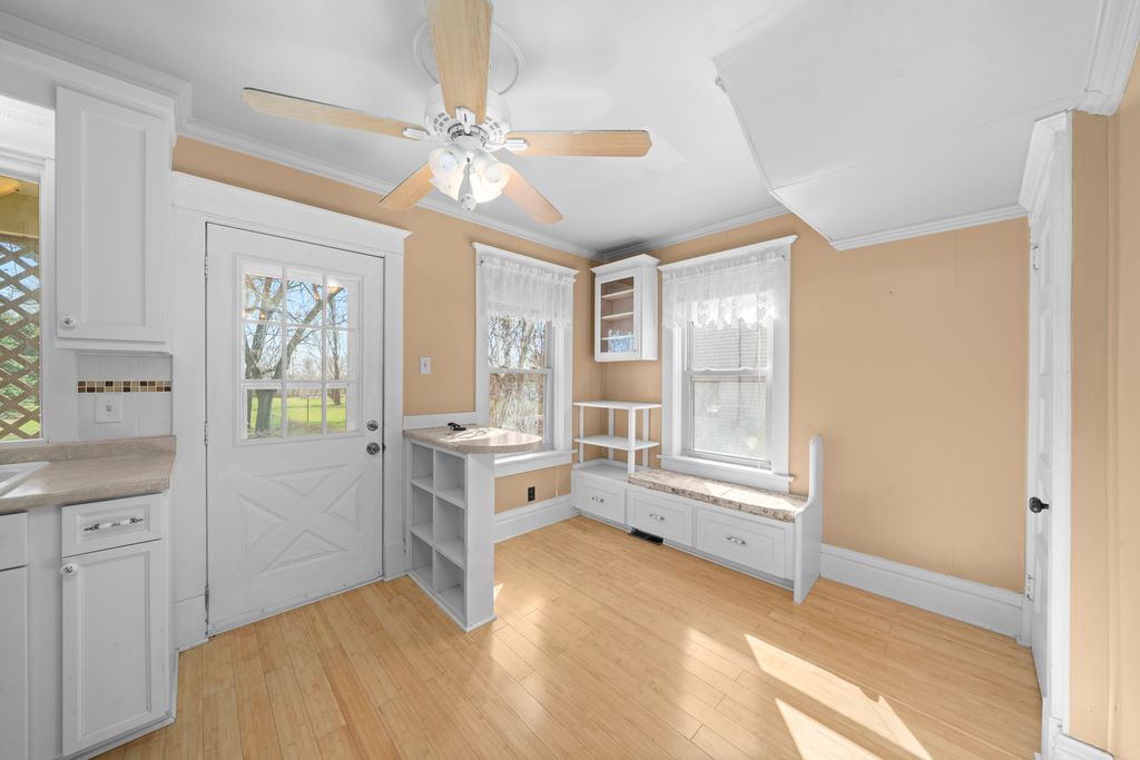 She's a BRICK, HOUSE! This mighty, mighty American Foursquare brings all the solid charm they just don't build anymore. The huge enclosed front porch welcomes you to this stately home featuring four bedrooms (one on the main floor), two full baths, modern upgrades along with plenty of vintage accents. On the main level the kitchen features updated cabinets, lots of natural light, and a window seat with extra storage. The main floor bedroom and full bath are a hard to find convenience. Upstairs you'll find three good-sized bedrooms, solid antique wood doors, some cool wide-plank wood floors under carpet, nice antique trim and a large full bath with claw-foot tub and room for a second-floor laundry room. Make sure you find the walk-up attic with plenty of room for storage, exercise equipment or hobbies through an upstairs nondescript door. Out back there's a big, partially fenced back yard, and garage. All this, and it's just a quick walk to downtown- plus the best BBQ around, a fantastic cup of coffee and one of the area's most popular ice cream shops. You'll love the quaint rural, small-town vibe of Hinckley, but it's a great location for an easy commute to the burbs and city! It's a fact, this home is stacked, with charm, function, space and amenities. This brick beauty is sure to please-Take a look-it'll be the one, the only one you need to see!