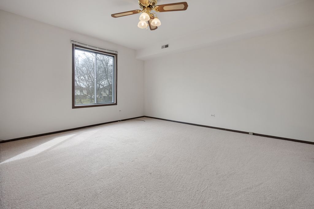 Great opportunity to own a three bedroom two bath coachhome and remodel it to your taste! Very well maintained and terrific location. Generous room sizes and a great floor plan that offers plenty of space and storage. Large balcony off living room and kitchen. Gas fireplace. Primary bedroom has walk in closet and private bath with shower. Separate laundry room. Vacant and ready to move in. Affordably priced! Easy expressway access. Come see for yourself! (Taxes don't reflect homeowners exemption)