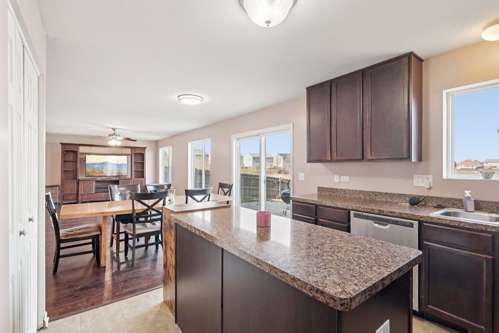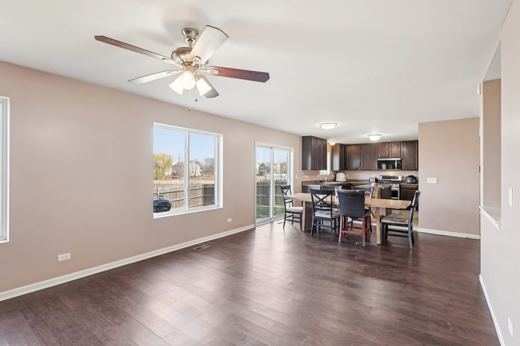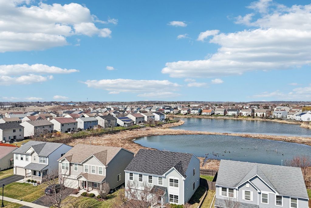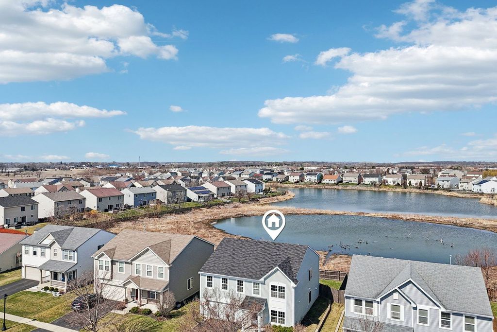 Largest model in Symphony Meadows, this original-owner Paramount offers over 3,100sqft above grade with a functional two-story layout and a premium pond lot that adds privacy and long-term setting value. The main level features a large living room, separate dining room, and an eat-in kitchen with all stainless steel appliances, center island, and a connected breakfast nook with glass sliders to a fenced yard, brick paver patio, and water views. Dedicated first-floor office provides flexibility for remote work or a fifth bedroom. The second level features new vinyl plank flooring, an oversized primary suite with a private full bath and walk-in closet, and generously sized secondary bedrooms. A large loft adds usable living space and can be converted to a sixth bedroom if needed. Located near a neighborhood park, direct access to the Millennium Trail, and a short drive to downtown Volo, this home offers a rare combination of size, layout efficiency, and long-term livability in a well-established setting.