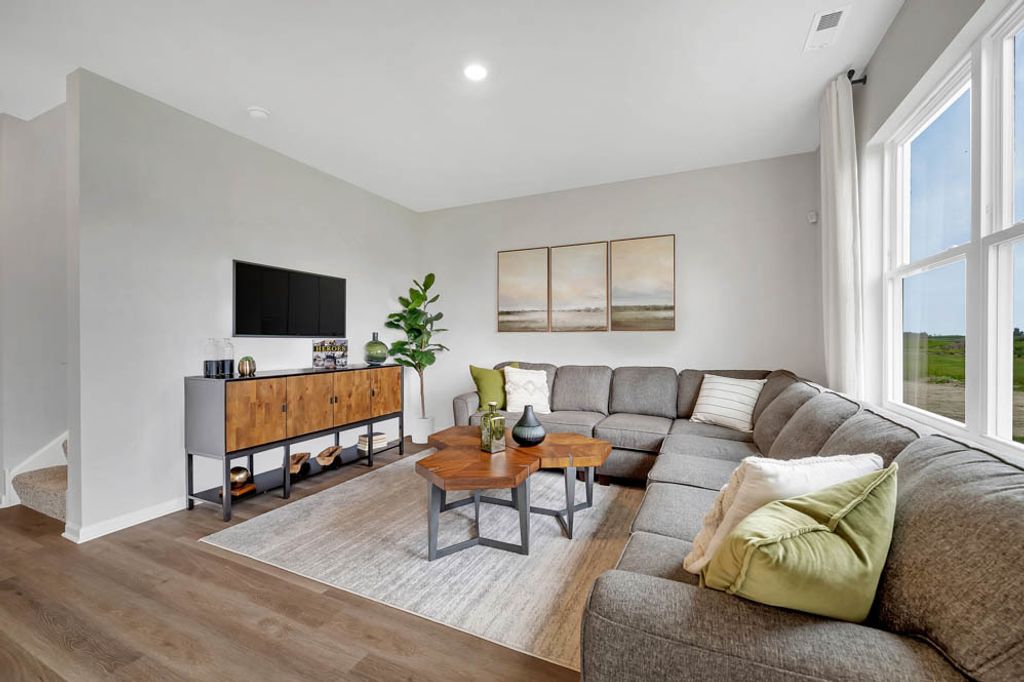Picture yourself at 450 Vista Drive, Hampshire, Illinois, a beautiful new model home in our Prairie Ridge Community. This two-story home will be ready for a late summer / early fall move-in! The Bellamy plan offers over 2,000 square feet of living space with a full basement, flex room, 4 bedrooms, and 2.5 baths. Going through your front door you will find the flex room with lots of natural light. This room can be used as an office, sitting room, or toy room, the possibilities are endless. Continuing down the hall you will enter the open concept great room and kitchen space, your kitchen features designer soft-close cabinetry with quartz countertops, stainless-steel appliances, a large island with bar stool overhang, and easy-to-maintain luxury vinyl plank flooring. Enjoy your private get away with your large primary bedroom and ensuite bathroom with a raised height dual sink, quartz top vanity, and walk-in shower with fiberglass surround and glass shower doors, Convenient walk-in laundry room, 3 additional bedrooms with a full second bath and linen closet complete the second floor. All Chicago homes include our America's Smart Home Technology. Photos are of similar home; actual home may vary.
