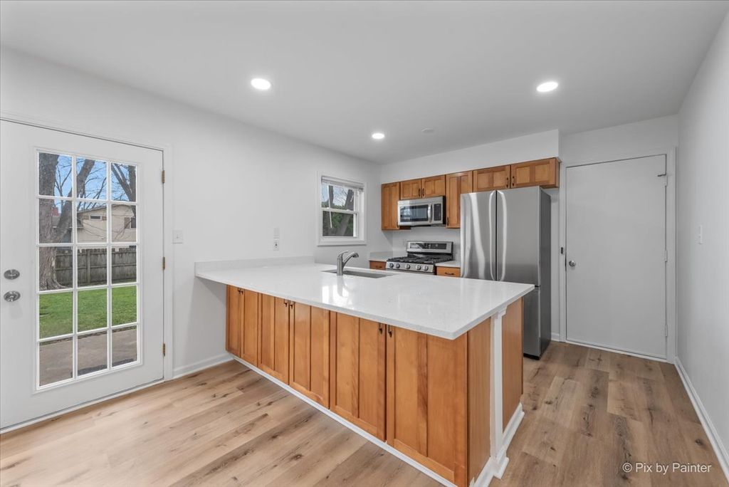 Multiple offers received, highest and best offers due Sunday 4/12 at 2p! Awesome turn-key home located in the Four Colonies neighborhood, near Randall Rd and near Rte 14! This home offers plenty of space with 4 BR / 2 Full Bath AND extra sub basement! Big fenced in yard (6' privacy fence!) with concrete patio and gorgeous mature trees... Open the front door and notice newer vinyl plank flooring, recessed lights, kitchen w/ quartz counters, all stainless appliances. Spacious living room on the main level with kitchen and full eat-in area. Upstairs offers 3 bedrooms with ceiling fans, full bathroom. A 4th bedroom is in the lower level with another full bathroom, and there's a "bonus space" in the lower level (play area, family room)... Additional sub basement that can be potentially finished or kept for storage! Recent UPDATES: Brand new siding 2026! Roof/gutters/facia all less than 5 years old (2021), New Vinyl Windows in 2024, Water Heater NEW in 2025. Newer Washer/Dryer. Fridge Installed NEW in 2024. Not much to do in this one but move in! Near parks, schools, Randall Rd conveniences, get in before Memorial Day weekend!