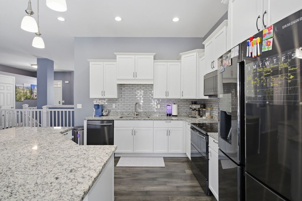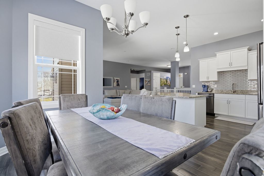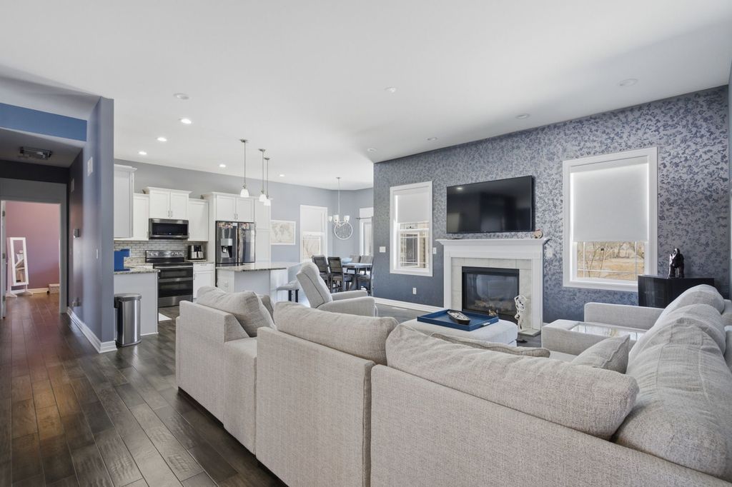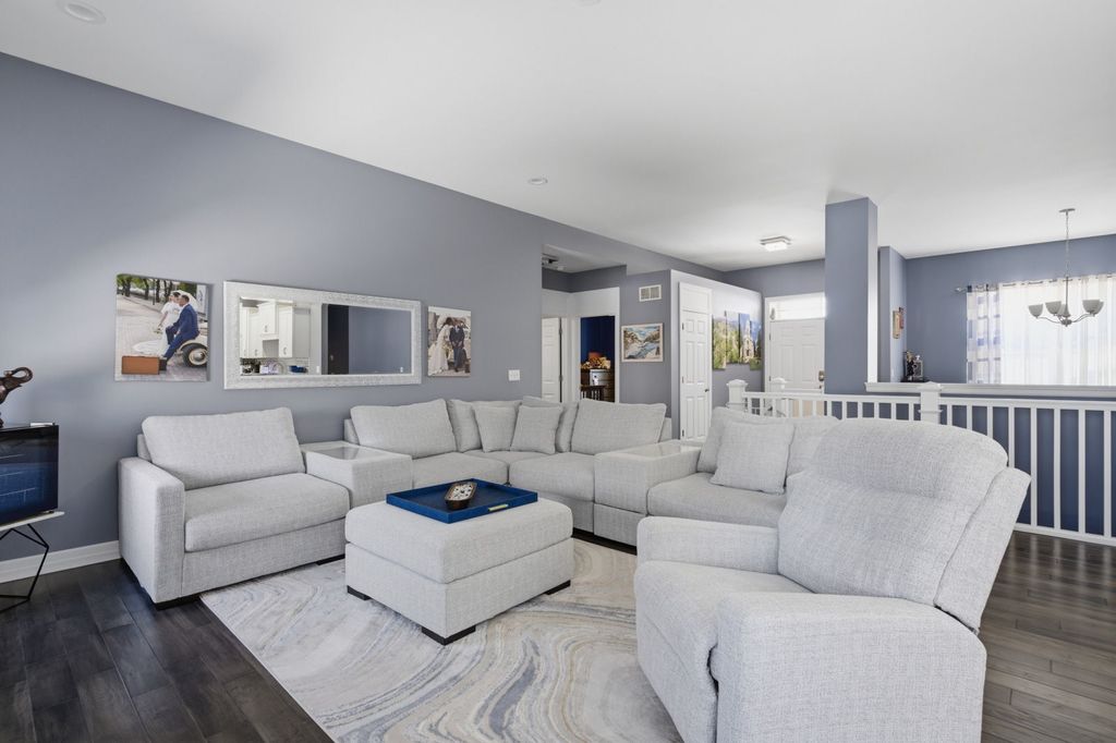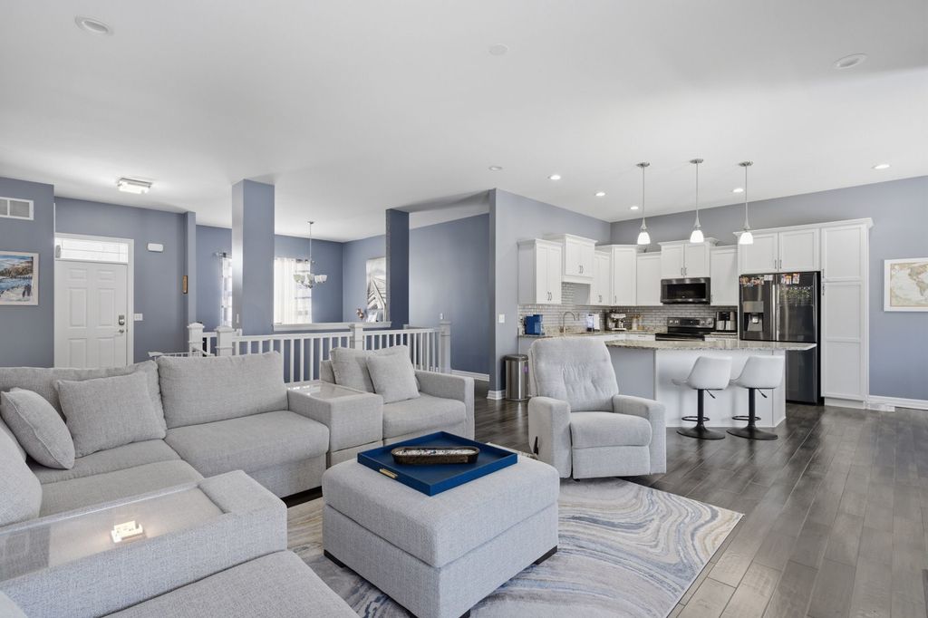 Welcome to this beautiful & well maintained single-family home, built in 2018 and thoughtfully designed for both comfort and everyday living. Featuring hardwood flooring throughout with no carpeting, this home offers a clean, modern feel from the moment you step inside. The main level features a spacious primary bedroom with a large en-suite bathroom and walk-in closet, along with 2 additional bedrooms conveniently located on the same floor. The layout is ideal for families looking for both functionality and privacy. The fully finished walkout basement is a true extension of the home, offering high ceilings, large windows that bring in natural light, a full bathroom, an additional bedroom, and a dedicated office space. It opens to a beautifully designed outdoor seating area, creating the perfect setting for relaxing or entertaining. Enjoy two Holland Stone patios, both in the front and backyard, offering a timeless, brick-like appearance. The backyard is exceptionally private, enhanced by the home's cul-de-sac location within a quiet neighborhood. Conveniently located near major shopping and dining options, with multiple children's playgrounds within walking distance, and less than 2 miles from Rock Cut State Park, this home combines comfort, location, and lifestyle in one.
