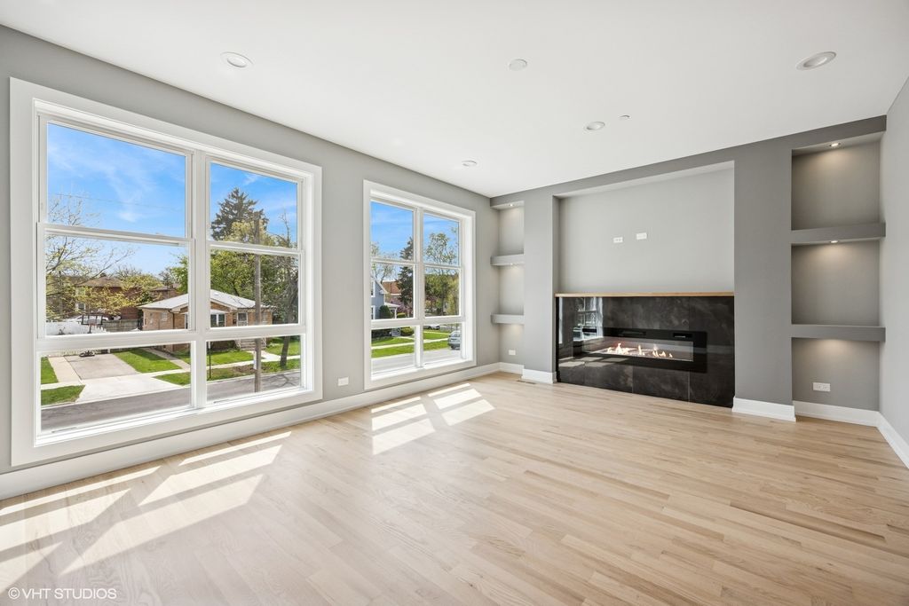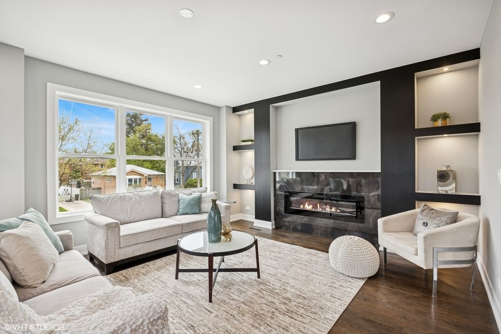 Introducing GROVE CENTER TOWNHOMES! A boutique community of just 11 distinct and newly custom-constructed townhomes where modern design is warmed by attention to detail and livability! Located in a tucked-away, tree-lined, residential neighborhood yet only a block away from the Metra Station to the city for super easy commute and nearby dining and shopping options, too! Features open concept living with 9' ft. ceilings, real hardwood floors (entry flooring from garage on main level is high quality LPV for long-term durability), zoned heating/cooling, fireplace with built-in shelving and oversized bright windows. The polished kitchen boasts quartz counters, stylish tile backsplash, beverage/wine cooler and oversized island for seating and meal prep! Step out to your private balcony to relax or entertain overlooking the soon to be completed landscaped courtyard! Retreat upstairs to a beautiful primary suite with designer wall treatment, tray ceiling, walk-in closet and ensuite bathroom with dual sinks and tiled walk-in shower. This level also features 2 additional bedrooms and a full hall bath. The entry level Flex space is ideal for home office, gym, den or guest retreat with full bath on same level as well! The attached 2-car garage is heated and equipped with EV charger for additional convenience. As much as you will fall for superior design and quality, the benefits of what is not readily seen is also incredible at Grove Center Townhomes - including: 200 amp electric service; tankless hot water system; fire suppression system on all levels and garage; and, sound-proof and fire resistant walls between units. Welcome Home.