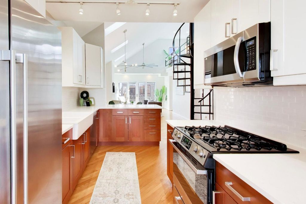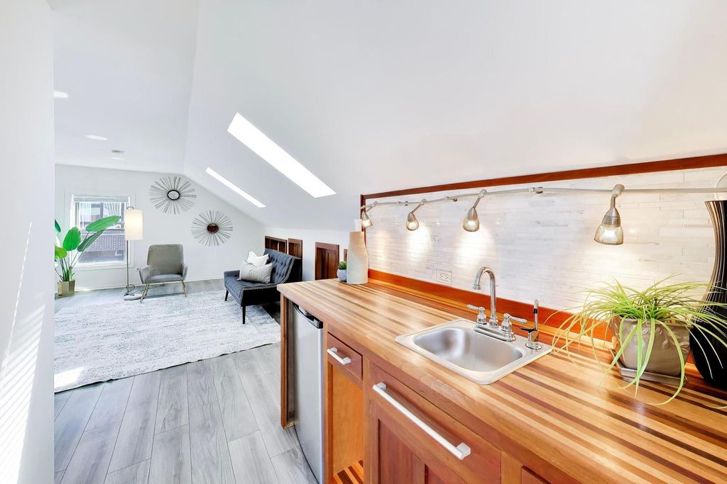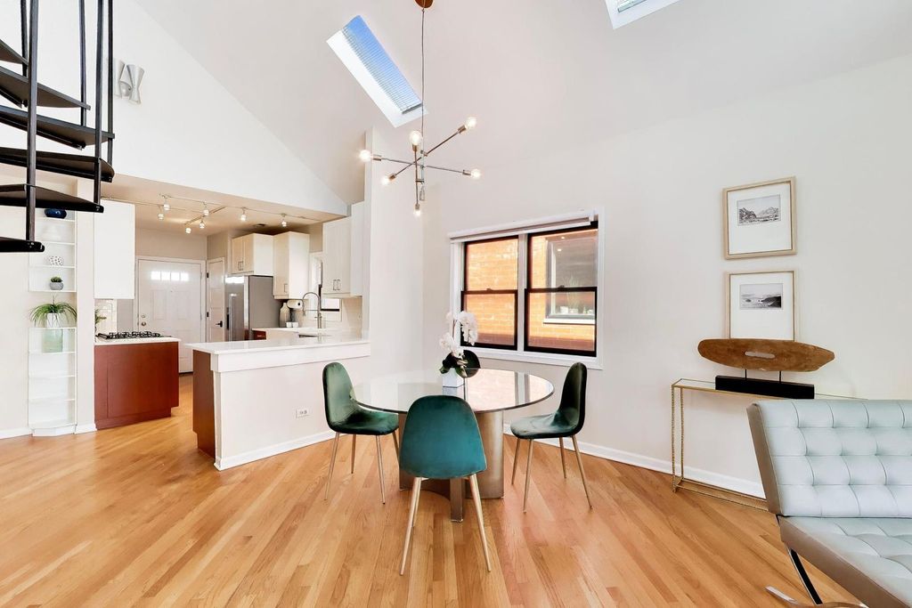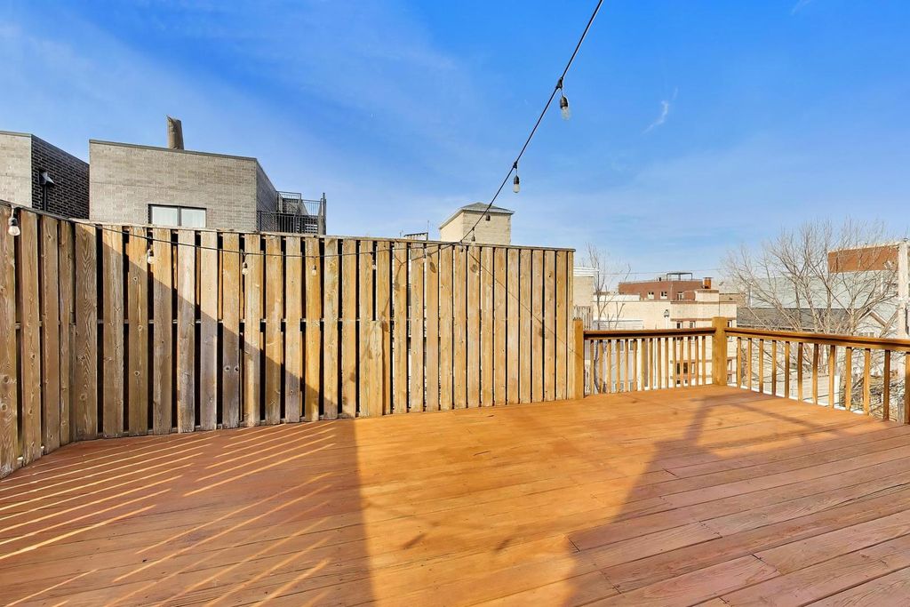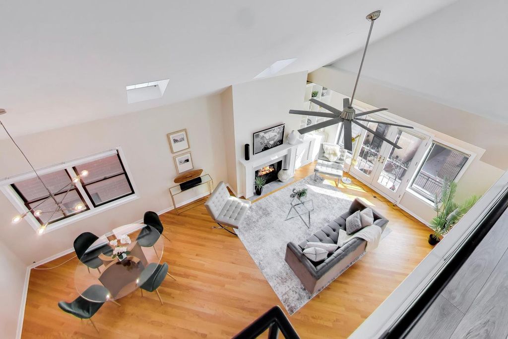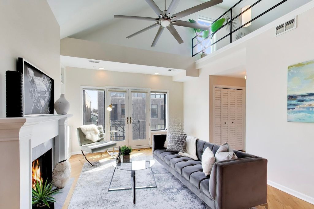 Presenting a Stunning Sun drenched lofted 2BR/2BTH Penthouse located in Noble Square on the cusp of trendy West Town that checks all your boxes! 2 Decks a spectacular roof deck + massive deck on the main floor soaring Cathedral ceilings 5 skylights Wood Burning Fireplace Juliet Balcony with modern timeless upgrades through out ALL THIS & Parking included! Approx 2000 sq ft this lovely home welcomes you in through an inviting foyer into a brilliantly sunlit 25 ft Living room/Dining anchored by a wood burning Fireplace with beautiful white built ins & a lovey Juliet Balcony. The open Chefs Kitchen features white Quartz counter tops white ceramic tile backsplash large white "farmers' sink with commercial grade faucet dual colour Cabinets are upper white lower feint cherry SS appliances a Pantry & bright East facing window. Entertain your guests on the 1st deck via the kitchen built with a large Privacy wall is perfect for summer BBQ's . A spacious Primary suite is located on the main floor and offers a large organized WIK sliding doors to the main deck. The spa inspired ensuite Primary bathroom is decked with all the bells & whistles a heating rack for your towels a spectacular walk in shower with frameless glass door has multiple jets centre rain shower and hand held shower. Dual sinks with marble tops and an extra cabinet for storage and heated floors make this the perfect zen escape! The 2nd bedroom suite has a sizable walk in closet and is framed by a picture window. The 2nd full bathroom features a handsome Navy Blue quartz topped vanity with storage and a Tub /Shower combination. The main floor also houses the laundry room has extra cabinets and is cleverly hidden by a sliding barn door. The AWESOME loft space is multi functional use for WFH office Family room Work out room has a wet bar and Refrigerator for all your entertaining needs leads to the most AMAZING ROOF DECK with built in seating around a FIRE PIT & shaded by a stunning Pergola a large area with ASTRO TURF has multiple uses for SUMMER FUN!! LOW HOA Garage Parking Pets welcome. Walking distance to Beatniks Carbon Hiro Izakaya & the best fresh cooked Pies at Hoosier Mama. Welcome Home!!
