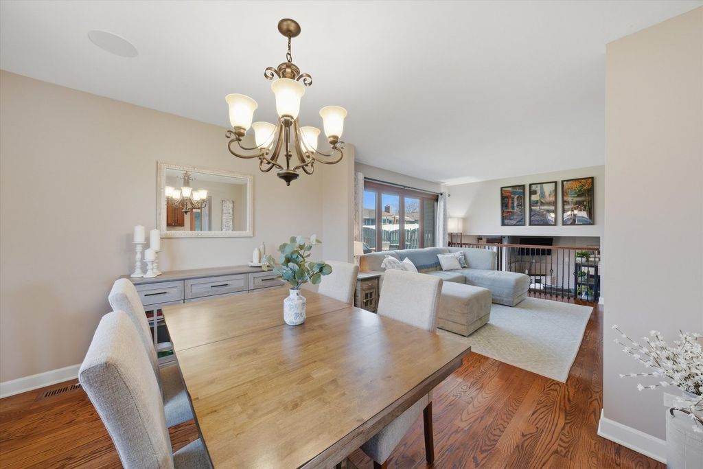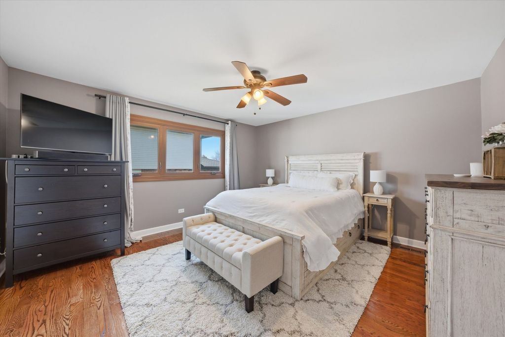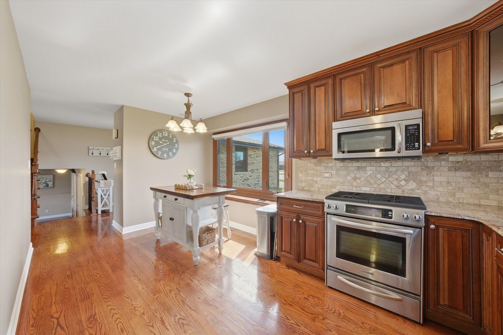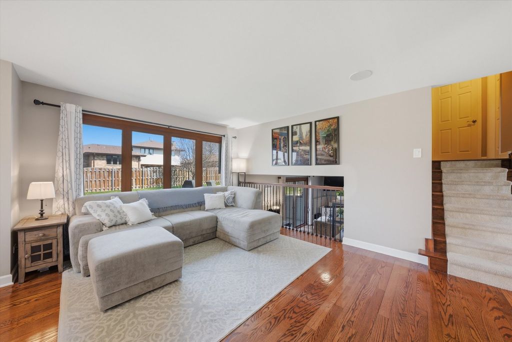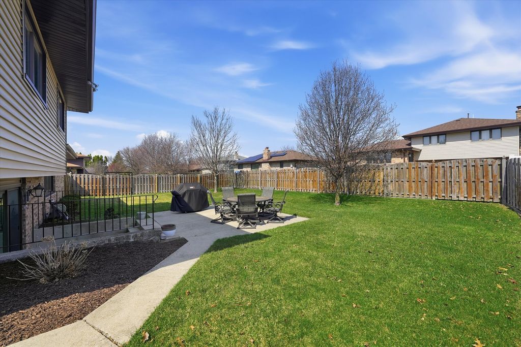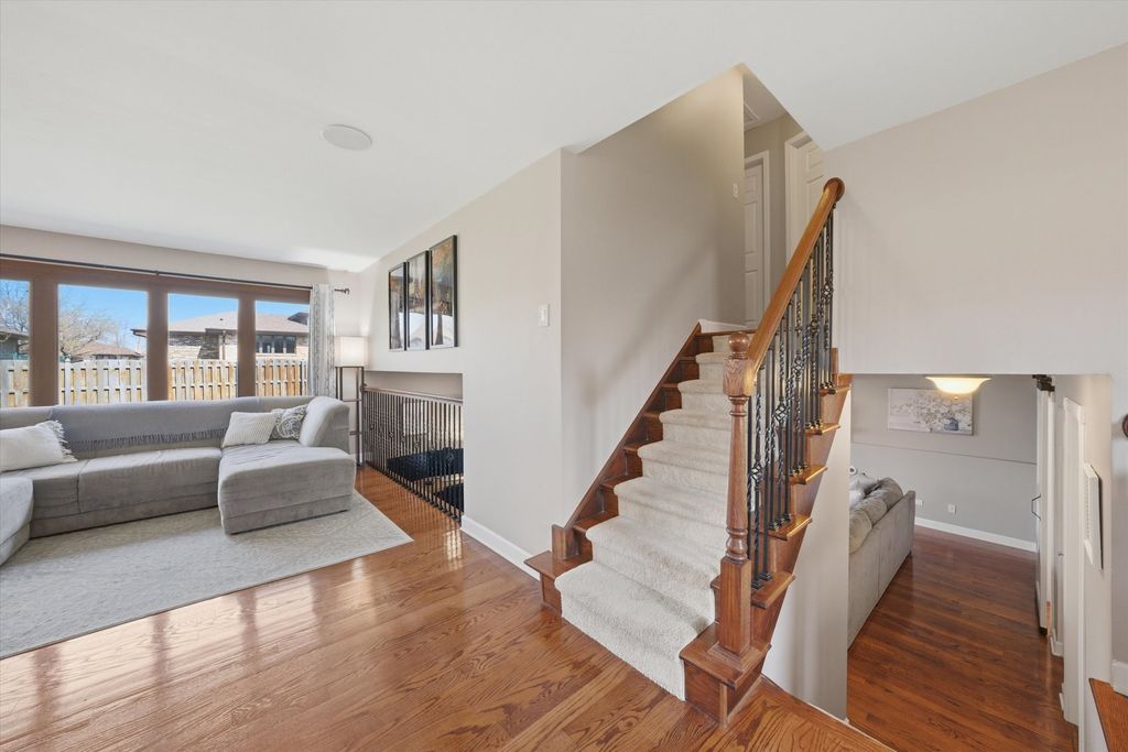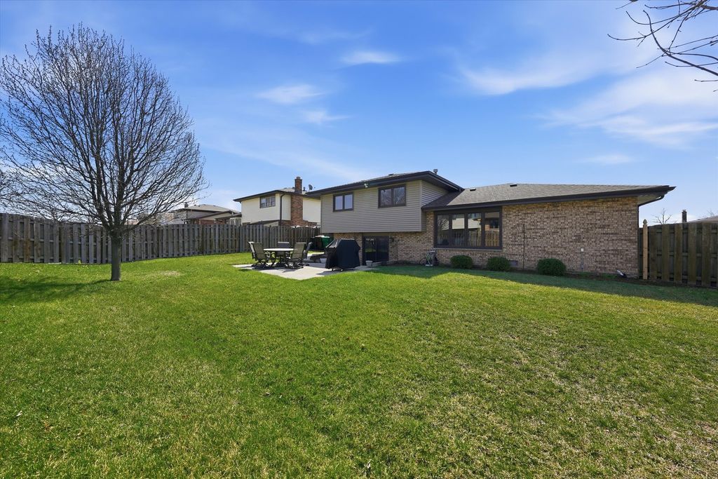 Updated 3 bed 2 bath split level in a great Tinley Park Location. Hardwood floors throughout. Updated kitchen and baths. Kitchen features granite countertops and stainless steel appliances. Dining room. Large living room on the main level. Large Family room on the lower level with a full bath. Large fenced yard with patio. 2 Car garage with storage. Brand new front door April 2026. New AC and Furnace 2025. New water heater 2021. New roof and siding 2016. New windows 2013. Newer Fridge and washer and Dryer