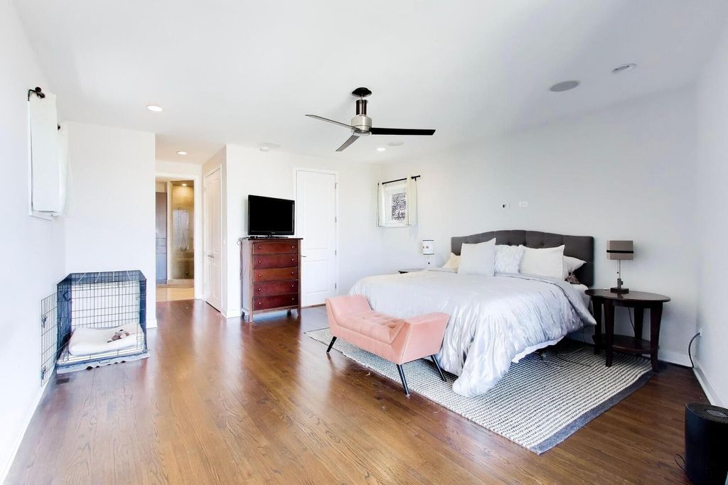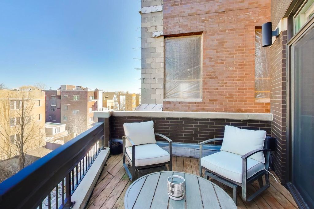 Sun-drenched duplex penthouse in the heart of Roscoe Village located within the highly sought-after, award-winning Audubon School District. This impressive 3-bedroom, 2.1-bath home offers an open floor plan, abundant natural light, and exceptional indoor-outdoor living with three private balconies and an exclusive rooftop with deck potential. The main level features a spacious open living and dining area centered around a wood-burning fireplace and a walk-out balcony. The beautifully appointed kitchen includes luxurious 2" quartzite countertops, an expanded island, custom wood cabinetry, Ann Sacks tile backsplash, and a walk-in pantry. Professional-grade appliances include a Viking cooktop, GE Monogram double ovens, and a new refrigerator. Two bedrooms complete this level, including a generously sized guest room with access to a private balcony, along with a full bathroom and ample storage throughout. The upper level offers a fantastic family and entertaining space with a large lounge area, fireplace, and wet bar. The spacious primary suite features its own private balcony, generous custom closets, and a spa-inspired ensuite bath with a Jacuzzi tub and walk-in shower. The third-floor bathroom has been recently updated. A new washer and dryer add additional convenience. Additional highlights include freshly painted interiors, new windows, beautifully stained hardwood floors throughout, custom lighting, organized closets, and a central audio/surround sound system. The property also includes exclusive rooftop rights with the potential to build a private rooftop deck, a storage unit, and one covered carport parking space. Ideally located on a quiet, tree-lined street with easy access to dining, shopping, parks, and public transit, this move-in ready home offers the perfect combination of space, comfort, and location. The main level features an open-concept living and kitchen area centered around a wood-burning fireplace and direct access to a private deck-perfect for indoor-outdoor living. The chef's kitchen is thoughtfully designed with elegant 2" quartzite countertops, an oversized island, custom wood cabinetry, Ann Sacks tile backsplash, and a walk-in pantry. High-end appliances include a Viking cooktop and GE Monogram double ovens. Two bedrooms are located on the main floor, including one with its own private deck, along with a full bathroom. Upstairs, a large family room provides a comfortable second living space with another fireplace and a wet bar, ideal for entertaining. The primary suite offers a private deck, spa-like ensuite bath with a Jacuzzi tub and walk-in shower, and generous custom closets. Additional highlights include fresh paint, new windows, beautifully stained hardwood floors throughout, custom lighting, organized closets, and a central audio/surround sound system. The home also includes exclusive roof rights, a storage unit, and one covered carport parking space. Ideally located and completely move-in ready.