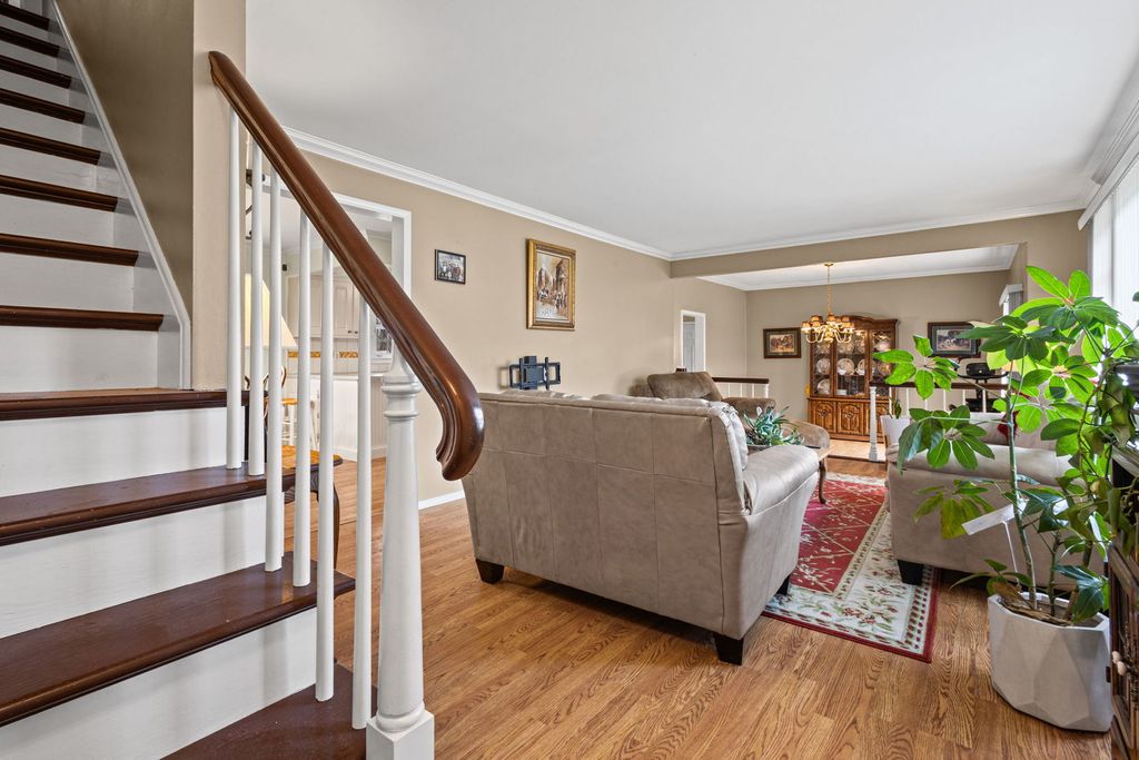 Beautifully updated 5-bedroom, 3-bath home offering space, style, and functionality in a fantastic Algonquin location! Step inside to find wood laminate flooring throughout the main level, enhanced by crown molding and newer light fixtures that create a warm, inviting feel. The remodeled kitchen features stainless steel appliances, a custom white backsplash, and flows effortlessly into the main living areas-perfect for both everyday living and entertaining. Just off the kitchen, you'll find a generous mudroom with pantry and additional storage, offering both convenience and organization. The main level also features two bedrooms and a beautifully updated full bath, providing flexible living options for guests, office space, or multi-generational living. Upstairs, you'll find additional generously sized bedrooms along with an updated full bath featuring elegant wainscoting. With five total bedrooms, there's plenty of room for everyone. The full basement has already been started, with all materials staying-offering a great opportunity for the next owner to finish and customize the space. Enjoy outdoor living in the large, fenced yard with a covered patio-ideal for relaxing or entertaining. The home also features a 2-car garage plus an attached 18x10 storage area, along with excellent storage in the walk-in attic space. Additional updates include newer furnace and A/C, roof (2017), and gutters with gutter guards (2018). A fantastic combination of space, updates, and flexibility-don't miss this opportunity!