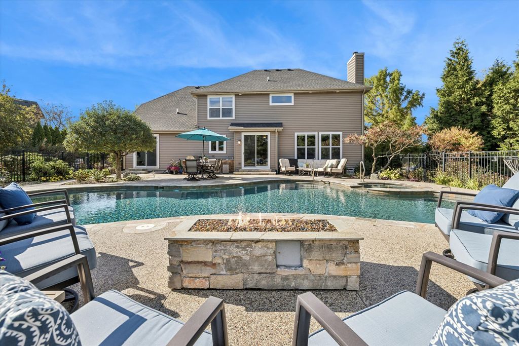 When you want simply the best! Quality home offers stellar finishes and contemporary ambiance! Stately facade with an acre FENCED yard this home has it all. Basically brand new with meticulous touches from top to bottom! Two story foyer greats you upon entry with large staircase and formal office/living room and dinning room. Stunning floors run cohesively throughout the main level and ground the space. Walking into the home, a large family room with warm fireplace make a statement in a bright family room! Open to a gourmet kitchen the large island, top of the line appliances, amazing cabinetry and views of the 33,000 gallon saltwater pool oasis in the backyard! Proceeding deeper in to the main level, you will find a beautiful bathroom, office/flex space and a large laundry room perfect for keeping everything tidy! Garage is 3 cars, epoxied and provides EV charging for todays high tech cars! Basement is built for fun with rec area, media tv seating, movie theater, wet auxiliary bar, full bath and storage room. 2nd floor provides lots of nice space to stretch out. Primary suite has hardwood flooring, nice size custom closets and a brand new spa like bathroom with large shower, tall vanities and water closet. 3 other bedrooms offer brand new carpeting, walk in closets and share a hall bath that is fresh! If this home did not have enough for you, the backyard with exceed your wants list! A large salt water pool with hot tub, pebble tech flooring and special features with lighting and fountains will entertain you and guests all summer! Sit by the outdoor kitchen and grill your favorite meals poolside! The lot is immense, even after the pool and outdoor patio areas, there is plenty of green lawn and pretty trees gives a nice sense of privacy! Located near the Randall Road corridor, close to shopping, schools and I-90. Sidewalks and parks throughout the area!