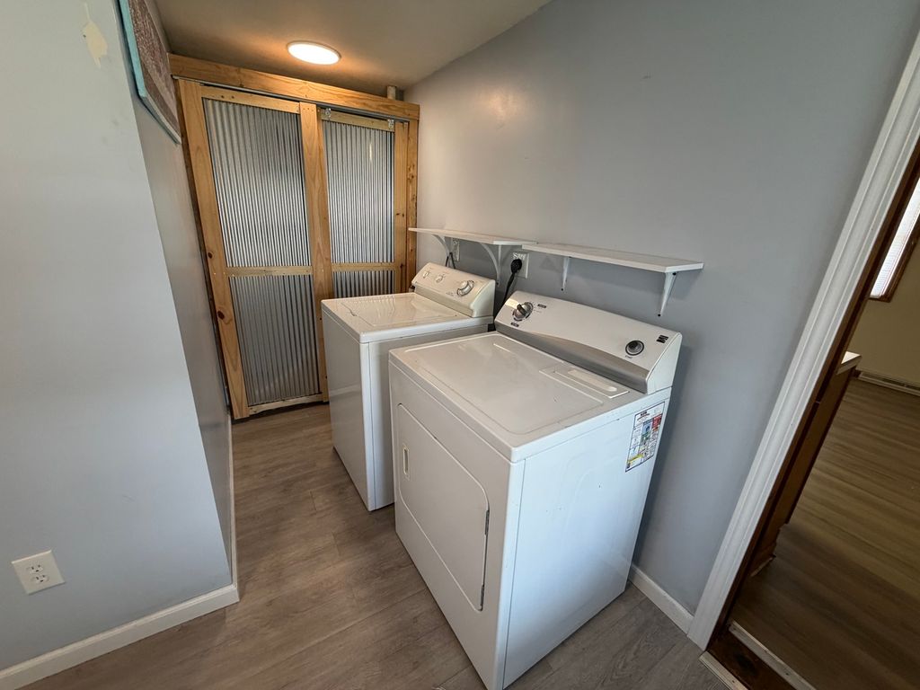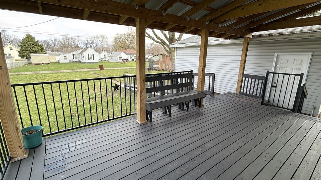 The home features two bedrooms with one full bath and has a crawl space. This Ranch home has a one car detached garage with off street parking. There is also alley access on the backside of the property. All the Appliance's: Refrigerator, Stove (Electric). Dishwasher, Washer and Dryer (Electric) Stay with the Home. The Dishwasher and Refrigerator are approximately 5 years old.Since the present owners have owned the home since 2021 they made several improvements. Updates: 2024, New Vanity, New Flooring and New Stool in Bathroom. 2023, New Rear Deck, Wheelchair Ramp with Composite Decking along with a Metal Roof over the Deck. 2022, New WYZE Doorbell. 2021, New Kitchen Door, New Laminate Floors in Kitchen and New Font Porch Railing. The owners have recently planted 5 New trees on the West side of the property.