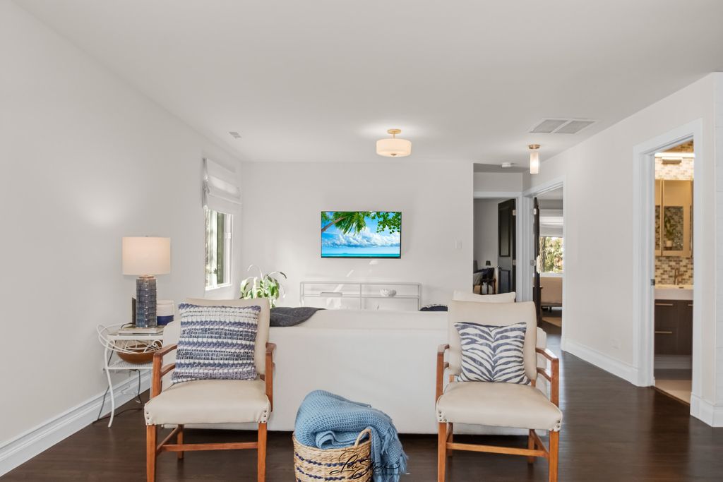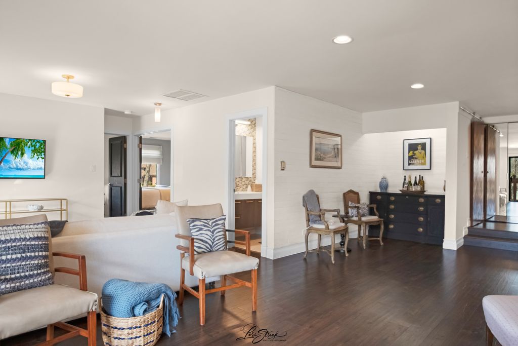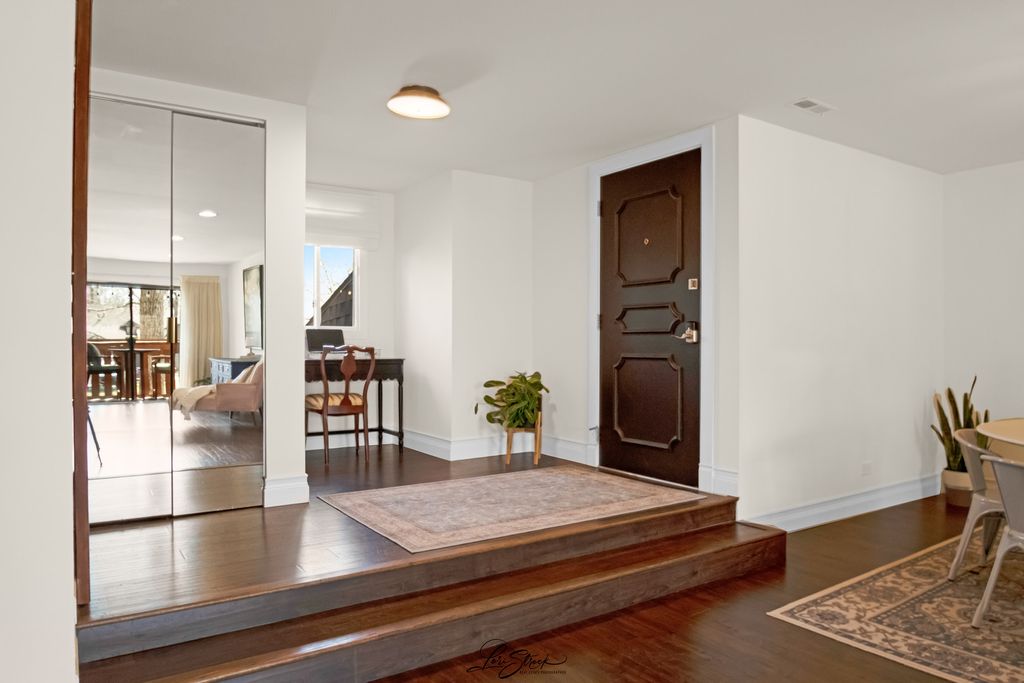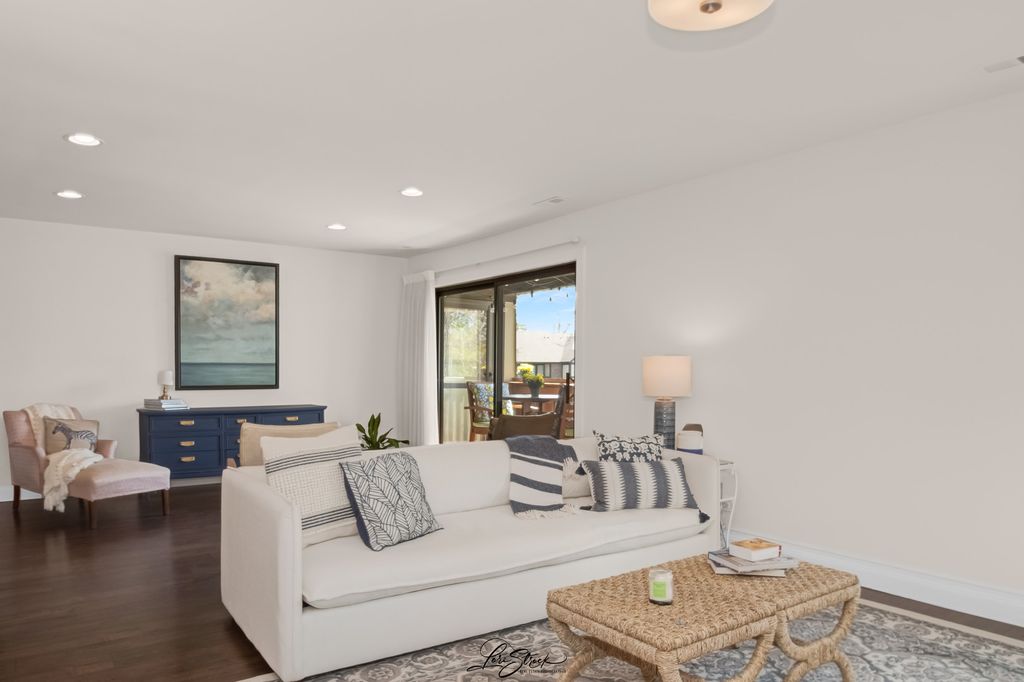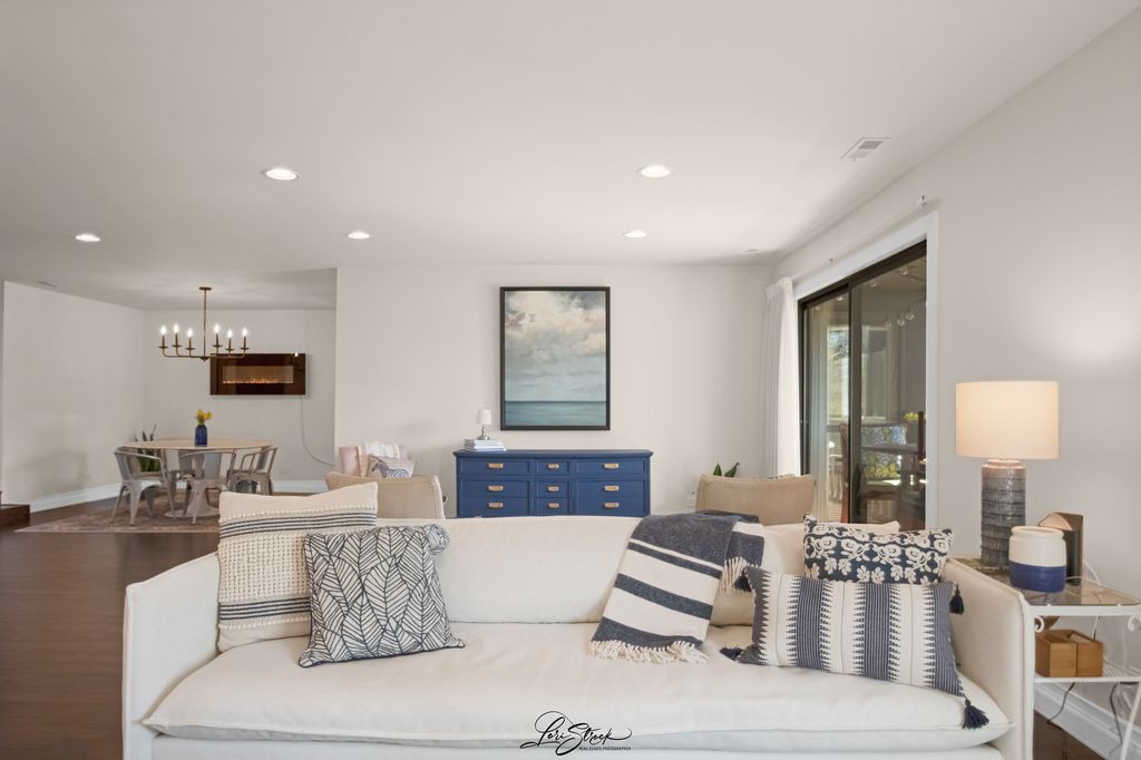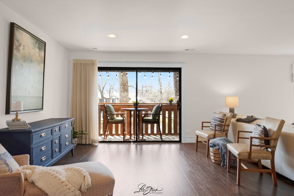IF location matters, this is the home you've been waiting for! One of 2 units with this premium setting, it backs directly to a tranquil pond and offers scenic views of the clubhouse and pool. Originally designed as a 3-bedroom, this thoughtfully reconfigured unit now features an expansive 24x25 living room-perfect for entertaining or relaxing in style. The space is bright and airy, enhanced by recessed lighting and wood laminate flooring throughout. The home is packed with upgrades, including: Beautiful wood-tone cabinetry, Corian countertops, Stainless steel kitchen appliances, Updated bathrooms, spacious walk-in closet, dedicated desk area with a window for natural light, and a convenient bar area for hosting..... Enjoy peaceful mornings or unwind in the evening on your private deck overlooking the serene pond.....Additional highlights include: One-car attached garage, Dedicated storage area, Newer HVAC system (2020) Roof - 1 yr, No original windows, Electric fireplace in the dining area for added comfort and ambiance.... Complex amenities include a clubhouse, outdoor pool, playground, and tennis/pickleball courts. This is truly a must-see home-you won't regret it! (can be converted back to a 3 bedrm, if needed)