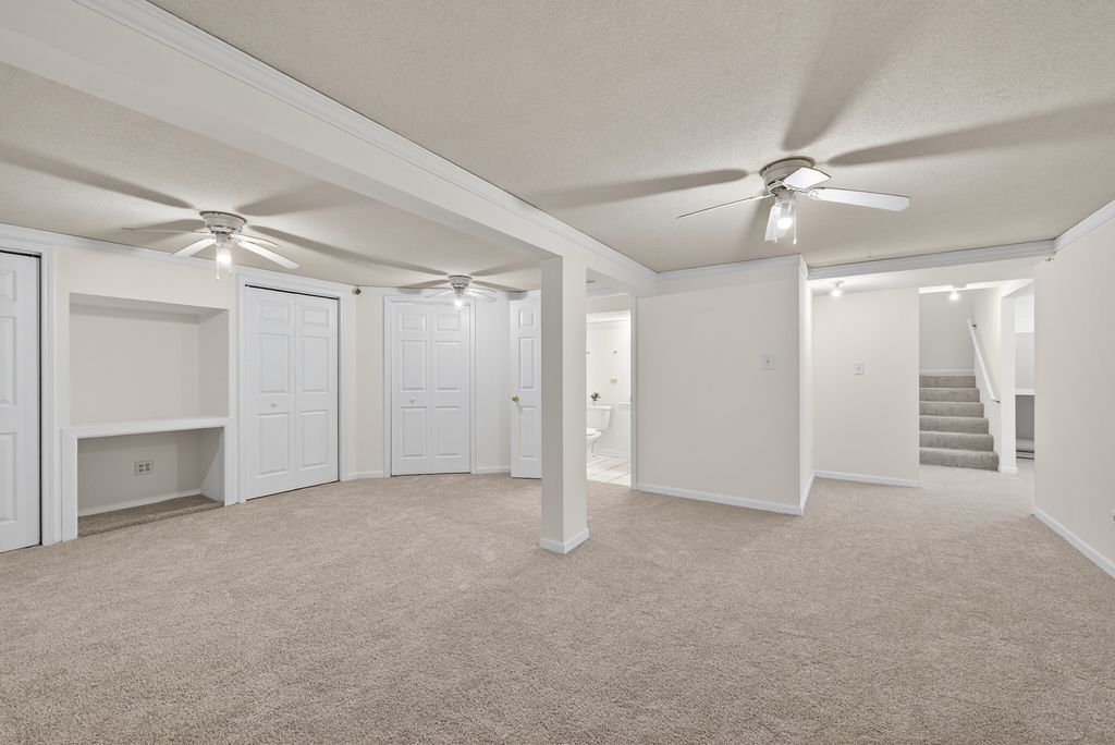 Welcome to this bright and spacious 2-bedroom, 3-full-bath home located in a desirable South Elgin community. Step inside to find soaring vaulted ceilings that create an open and airy feel throughout the main living space. The home has been freshly painted and features brand-new carpet on the basement level and stairs, making it move-in ready. The light-filled kitchen offers plenty of space for cooking and gathering, while the adjacent living and dining areas provide a comfortable layout for everyday living and entertaining. Step outside onto the private balcony overlooking beautiful greenery and the common area, the perfect spot to relax with your morning coffee or unwind in the evening. The main level includes a versatile den that could easily be converted into a third bedroom, home office, or guest space. Additional updates include a new water heater and sump pump installed in 2023. Conveniently located near shopping, dining, and everyday amenities, this home offers the perfect blend of comfort, space, and location.