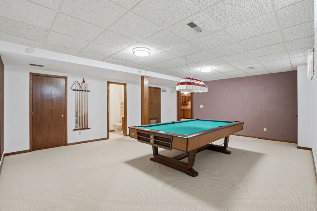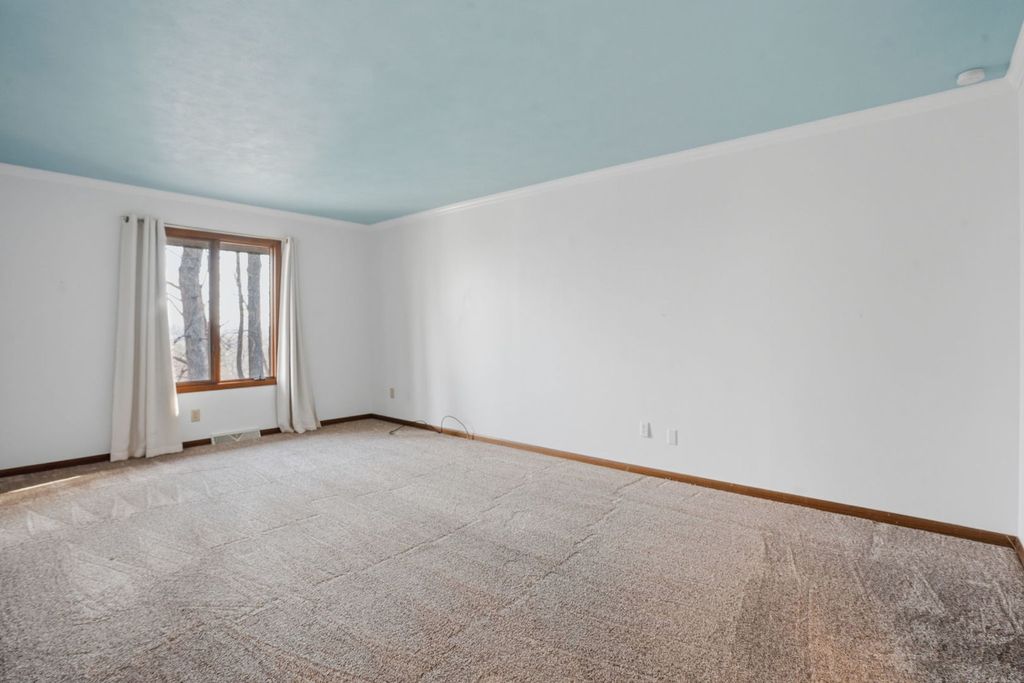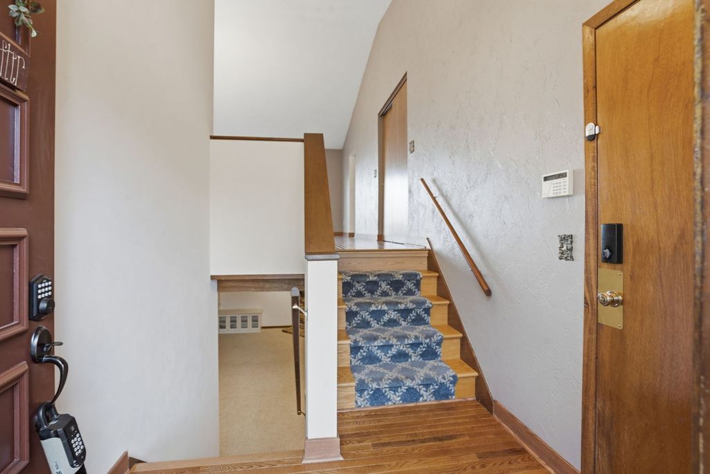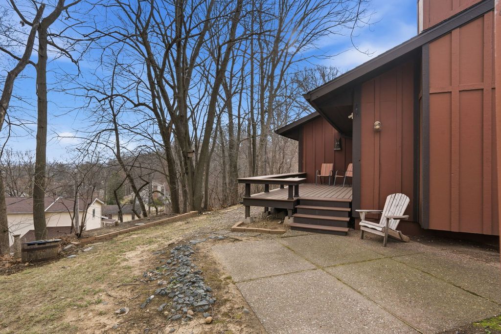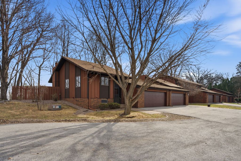 End-unit condo in the desirable Seven Oaks community offering added privacy, natural light, and a functional layout throughout. This 20-unit association provides a secluded, established setting with a tucked-away feel while still being conveniently located. The main level features updated oak hardwood and tile flooring along with a spacious living area centered around a dual gas log and wood-burning fireplace. Large windows bring in natural light and connect the interior to the surrounding wooded backdrop. The kitchen includes solid surface countertops, painted cabinetry, and ample storage, with an adjacent dining area that flows easily for everyday use or entertaining. The primary suite offers a generous footprint with a walk-in closet and private bath. Additional bedrooms provide flexibility for guests, office, or hobby space. Carpet throughout the home is less than five years old. The finished lower level expands living space with a second fireplace and room for recreation, media, or additional living area. Outdoor space is a standout feature with a newer Trex deck overlooking a wooded backdrop with seasonal Mississippi River views in fall and winter, while spring and summer offer increased privacy with mature foliage. Attached garage, end-unit positioning, and a well-maintained community make this a strong option for low-maintenance living with added space and privacy.