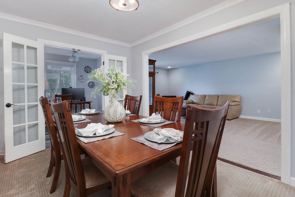 Welcome to Bloomington's sought-after Crestwicke community-where everyday living feels like a getaway. This spacious ranch isn't just a home, it's a lifestyle. Picture cruising your golf cart to dinner, the pool, or the tee box in minutes, enjoying evening walks with neighbors, unwinding with a drink on your deck, and even grabbing fresh eggs just up the road. Crestwicke offers a true sense of community with activities and events in every season. Inside, you'll find a thoughtfully designed 4-bedroom, 2.5-bathroom ranch that offers both space and versatility. The main level features all four bedroom, two generous living areas, along with an eat-in kitchen and a formal dining room. The primary suite is a private retreat, complete with its own access to a secluded patio-perfect for quiet mornings or winding down at the end of the day. The finished lower level expands your living space even further, offering a large family room that's perfect for entertaining, a game room, or a kids' rec space. Situated on a spacious corner lot, you'll love the large deck that invites outdoor living and entertaining all season long. If you've been looking for a home that blends comfort, space, and a community lifestyle-this is the one.