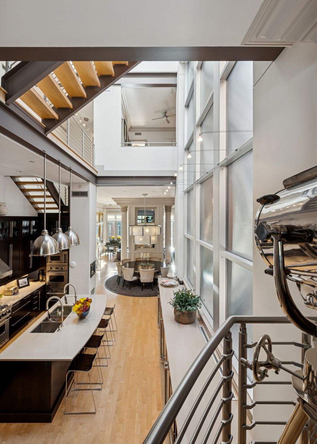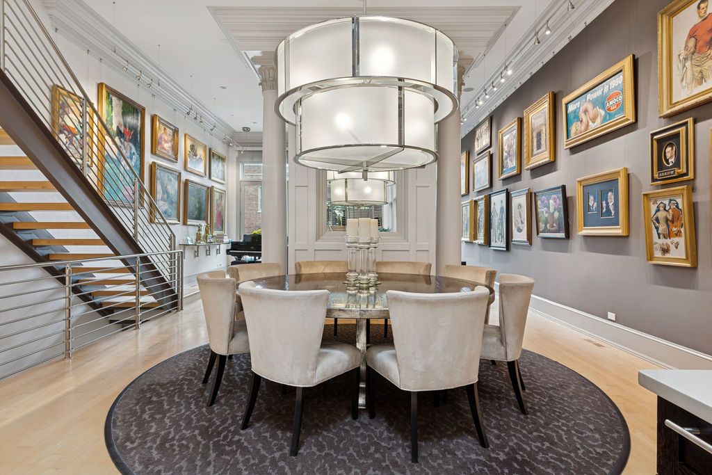 A truly extraordinary residence, seamlessly blending ultra-refined private living. Designed and built by the developer for personal use, the property is without equal-an architectural statement that redefines luxury urban living. A private entrance on Janssen Street leads to your personal three-stop elevator, opening into a dramatic 40-foot atrium lit by a 400 SF curtain wall of industrial glass and crowned with a 10'x10' glass skylight that floods the home with natural light. The residence features 14-foot ceilings, 18" crown molding accented with exposed structural steel components, custom lighting throughout, including designer fixtures by Darcy Bonner and Holly Hunt. The chef's kitchen is impeccably appointed with Sub-Zero refrigeration, a Viking range/oven, an additional Viking convection oven, (6) Viking wine coolers, and dual Bosch dishwashers. Highlights continue with three wood-burning fireplaces, maple hardwood floors, stainless steel railings, a full sprinkler system, and two sets of LG washers and dryers. Four bedrooms occupy upper floor with exquisite finishes and two bathrooms. The primary suite includes (4) additional skylights. A spacious, custom-designed private office occupies its own dedicated floor, offering the ultimate work-from-home sanctuary. Outdoor living is equally impressive, with approximately 1,300 square feet of outdoor space on four levels, showcasing breathtaking Chicago skyline views and a spectacular entertaining terrace that flows directly from the main living space. Supplemental amenities include garage parking for two cars and outside parking for three additional vehicles. More features include a heated driveway, tool room, abundant storage. Many of the building's mechanical elements were completely upgraded in 2025. The building is approximately 7,800 SF per construction documents. A rare opportunity to own an architectural masterpiece that combines luxury, and unmatched design in a phenomenal location. Owner is a licensed real estate broker.
