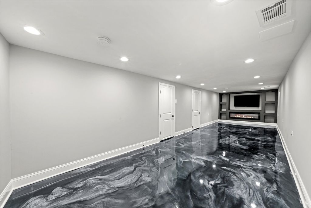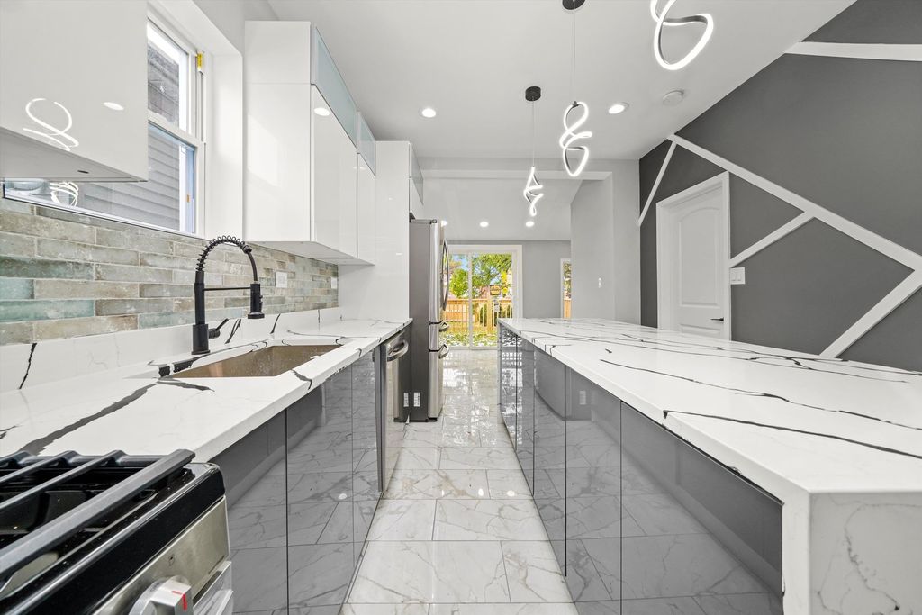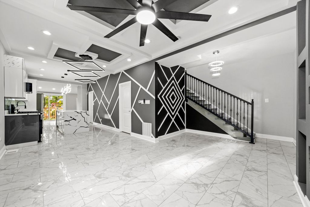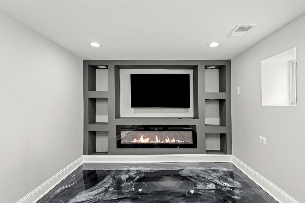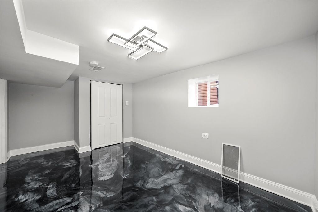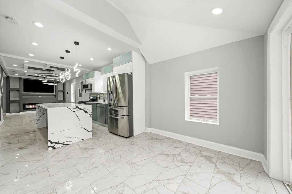 Welcome home to this fully renovated 5-bedroom, 3-bath beauty offering the perfect blend of modern luxury and everyday comfort. With 3 bedrooms upstairs, 1 on the main level, and 1 in the finished basement, there's flexible space for living, working, and hosting. The stunning modern kitchen features soft-close cabinetry, quartz countertops, porcelain tile flooring, and premium Samsung stainless steel appliances. The open-concept living room includes a sleek electric fireplace and a mounted 75" Samsung TV. The spacious lower-level family room offers epoxy flooring, a second electric fireplace, and an additional 55" Samsung TV-ideal for movie nights and entertaining. This home is new from top to bottom: roof, siding, soffit, fascia, gutters, concrete sidewalk, windows, doors, trim, paint, and flooring, plus updated plumbing and electrical. Enjoy peace of mind with all new mechanicals, including a furnace, central air, water heater, and a high-end washer/dryer combo. Bathrooms are beautifully finished with porcelain tile and modern vanities. Step outside to a large new deck, perfect for relaxing or hosting outdoors. Conveniently located near restaurants, shopping, and expressway access, this move-in-ready showstopper has it all. Don't miss out-schedule your private showing today!