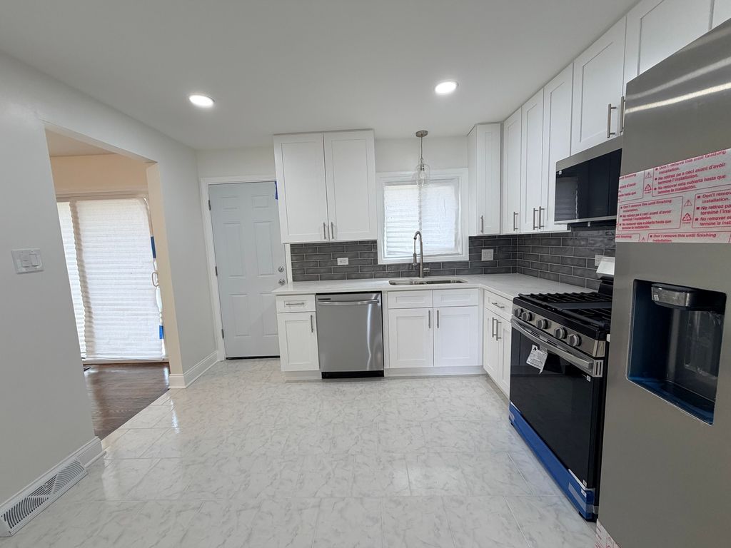 Beautifully Rehabbed with Village Permits! This is one was done right...not merely a paint, cabinet & floor job! FEATURING ALL NEW INFRASTRUCTURE, INCLUDING THE ROOF, ELECTRIC, PLUMBING AND HVAC!!! Enjoy the security of knowing the major mechanicals and roof are ready to go for decades to come! You will love the finishes in this beautiful home! Starting with the beautiful hardwood floors and featuring a all new kitchen boasting 36 inch shaker cabinets, quartz counter tops, glass backsplash, porcelain tile floor and fully applianced, new stainless steel refrigerator, stove, dishwasher and microwave! The main level bathroom not only beautiful but it is huge! You're going to love the double bowl vanity and large linen closet. The lower level bath has a full walk-in shower as well as premium cabinetry! The lower level bathroom serves the spacious Family Room on the lower level which is flanked with an electric fireplace and styled with premium laminate flooring! Need a fourth bedroom...? The lower level will serve well for a fourth bedroom, as is or you can build out a wall to make for separate bedroom & living quarters. Now...for your entertainment pleasure...the new 8x8 deck is perfect for the barbecue enthusiast. It leads down to an enormous fully fenced backyard which further features a patio. In case you didn't know, there are DOWNPAYMENT AND CLOSING COST ASSISTANCE programs available up to THIRTY FIVE THOUSAND DOLLARS! GIVE US CALL AND SCHEDULE YOUR SHOWING TODAY!