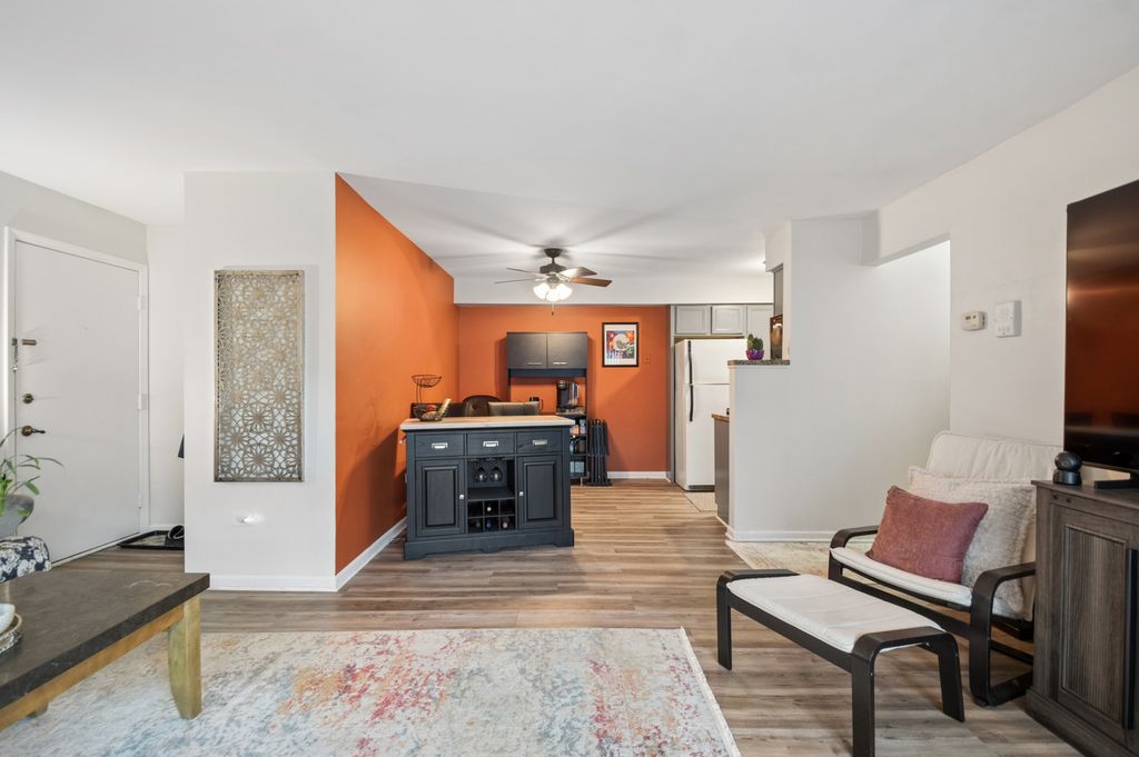 Beautifully updated 1/1 1st floor unit with porch and assigned parking space, located in the heart of Oak Lawn, less than a half a mile to the park district, shopping, restaurants, transportation and more. Freshly painted throughout, fully renovated bathroom and new luxury vinyl flooring 2025. Newer window and sliding glass door, modern painted kitchen cabinetry and new microwave. HOA includes heat and water, and communal laundry right around the corner from the unit. Truly affordable, stylish, and a prime location.