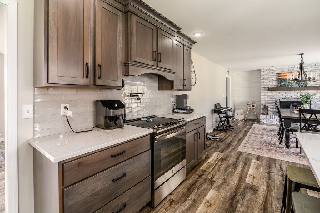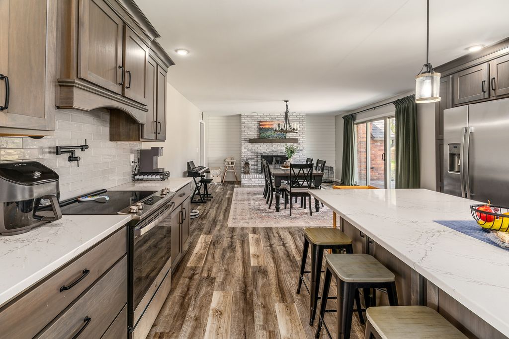 This better-than-new, single level residence has been thoughtfully updated and is located in a well-established neighborhood. Offering 4 bedrooms and 3 full bathrooms, this home sits on one of the largest lots in the subdivision (3 lots), providing ample room for a future additional garage space, living space, or outdoor amenities. All four bedrooms are generously sized, and the primary suite is large enough to accommodate a sitting area and includes a walk-in closet. Outside, the 20'x25' stamped cube patio creates the perfect outdoor living space. Constructed of solid brick, the home offers durability and low-maintenance appeal. The interior features a beautifully renovated kitchen complete with soft-close cabinetry, tile backsplash, stainless steel appliances, and a pot filler, creating an efficient and attractive workspace. A dedicated mudroom with laundry and full bath provides convenient access for outdoor activities. The property includes a 3-car garage with potential to finish out a living space in the third car bay or above the garage. Recent improvements include all new flooring and neutral paint, updated kitchen and baths with tile surrounds, crawl space encapsulation, added insulation, new large stamped concrete patio, new HVAC and ductwork (2022), new roof in 2023, new sewer line, new water heater, updated lighting, and black hardware throughout. Located close to the Marion Sports Complex, this home offers convenient access to walking paths, recreation, and everything Marion has to offer. This property combines modern updates, solid construction, and an exceptional lot-an ideal choice for buyers seeking comfort, space, and long-term value.