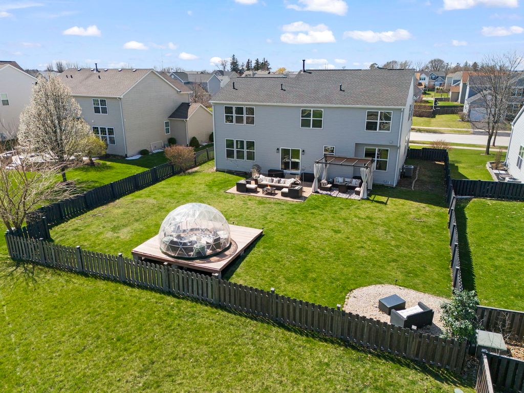 This stunning, fully updated 6-bedroom home offers the perfect blend of space, style, and functionality-designed for both everyday living and unforgettable entertaining-located within highly sought-after Yorkville schools. The main level showcases beautiful hardwood flooring throughout the foyer, kitchen, office, and laundry room. The heart of the home is the gorgeous, modern kitchen featuring quartz countertops, a massive island, 42" cabinetry, stainless steel appliances, and a dedicated beverage area complete with a wine fridge-perfect for hosting and everyday convenience. Upstairs, you'll find five generously sized bedrooms, including an expansive primary suite with two walk-in closets and a luxurious ensuite bath featuring double sinks, a soaking tub, and a separate shower. Bedroom five is currently set up as a theater room, offering incredible flexibility to fit your needs. The fully finished basement expands your living space even further with a recreation area, bar, sixth bedroom, full bathroom, and ample storage. Already equipped with rough-in plumbing and a gas line for a future full kitchen, this space offers incredible potential-ideal for guests, entertaining, or multi-generational living. Step outside to your private backyard oasis-complete with a patio, deck, gazebo, and a unique all-seasons bubble dome tent-all within a fully fenced yard. This home was truly designed with entertaining in mind. Additional highlights include a 3-car attached garage, passive radon system, whole house humidifier, and major exterior updates including a brand-new roof and siding (2024) with a transferable warranty for added peace of mind. A rare combination of space, modern updates, and lifestyle features-this home is as impressive as it is functional. First Look: Thursday, April 16th, 4-7 PM.
