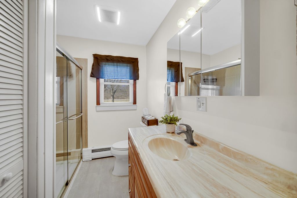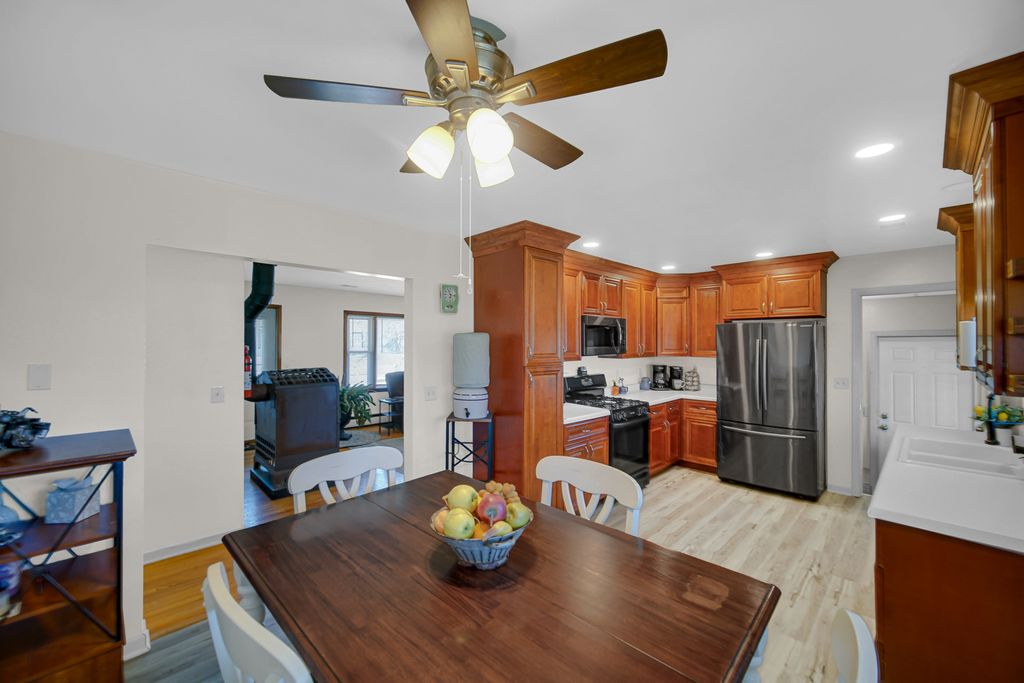 Experience peaceful country living with expansive, open views in this beautifully maintained ranch home set on two spacious lots. Step inside to discover gleaming hardwood floors throughout and a stunning custom new kitchen featuring tall cabinetry with crown molding, new countertops, appliances, laminate flooring and a bright, sun-filled breakfast area. The fully updated bathroom offers a stylish walk-in tiled shower and a convenient linen closet (2024). Each bedroom is designed for comfort with ceiling fans and generous closet space. Relax or entertain in the inviting three-season room, or take advantage of the full basement, which provides abundant additional living and storage space, including a large recreation room, workroom, and a laundry area complete with a utility sink. A new sump pump adds extra peace of mind. Car enthusiasts and hobbyists will appreciate the oversized attached one-car garage, along with a second garage accommodating up to three vehicles, complemented by new blacktop (2024). Additional updates include a new well pump, wiring, and waterline (2023), new A/C (2024), freshly painted exterior with trim on the home and both garages, a newly screened-in back porch (2025), new garage doors and opener (2025), and a fresh layer of R-30 attic insulation. The private backyard offers scenic nature views, creating a serene retreat right at home. Move-in ready and thoughtfully updated, this property is perfect for enjoying all that summer has to offer. Truly unique in every way.
