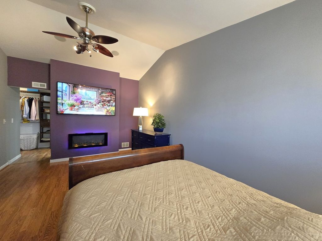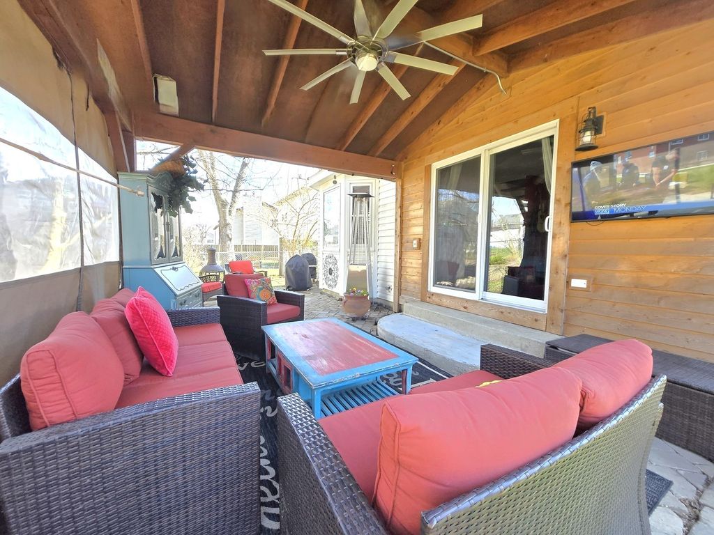 Easy living in this 1,364 sq ft 2-story, offering 2 bedrooms plus a versatile use loft/office/flex room, and 2.1 baths! The ideal size for starting out, or downsizing! The remodeled kitchen features upgraded cabinetry, farmhouse shelving, granite countertops, stainless steel appliances, a bay window, and a breakfast bar. All bathrooms are updated! The main floor features rich hand-scraped walnut hardwood flooring, and the second floor offers easy maintenance laminate flooring. Retreat to the primary suite boasting a cathedral ceiling, a relaxing heatilator wall fireplace, a walk-in closet with organizers, and a beautifully renovated ensuite bathroom! Convenient main-floor laundry room with laundry sink. Additional features include recessed lighting and 3-zone surround sound. There is also a large, clean and dry concrete crawl space for ample interior storage! Step outside to unwind on the covered patio with roll-down sides for added privacy and comfort. The extended stone paver patio and covered picnic table area are perfect for outdoor entertaining! For the garden lovers - there are garden beds! The shed is great for outdoor furniture storage, sporting equipment, and lawn equipment. All of this on an manageable size backyard! Many newer features include HVAC/2021, Windows /2021, Roof/2013 (ages approximate). Exclude laundry room door. Conveniently located to I-90, Rte 20, The Metra, Shopping, Restaurants, Schools, Parks, and more!