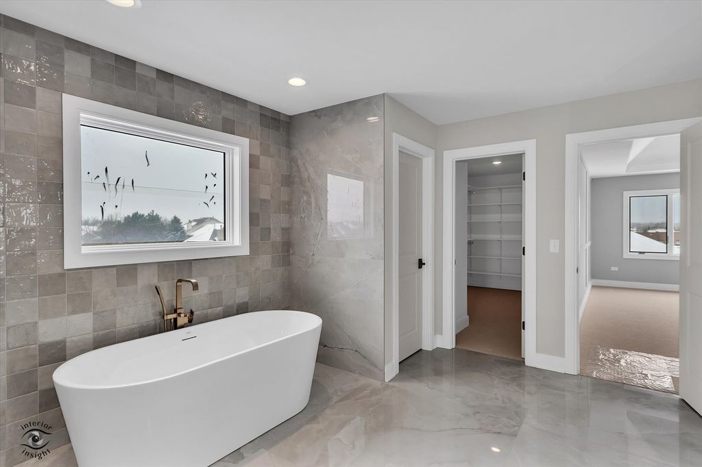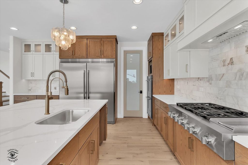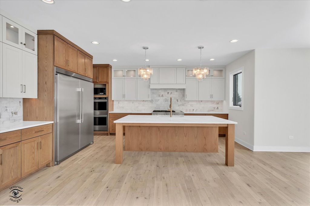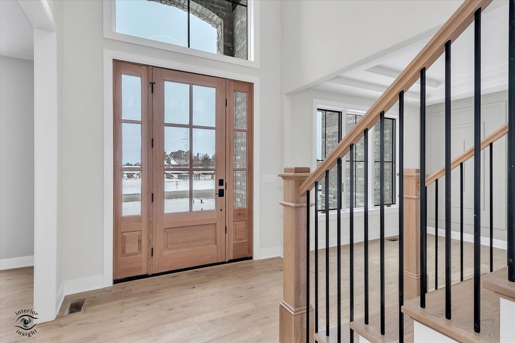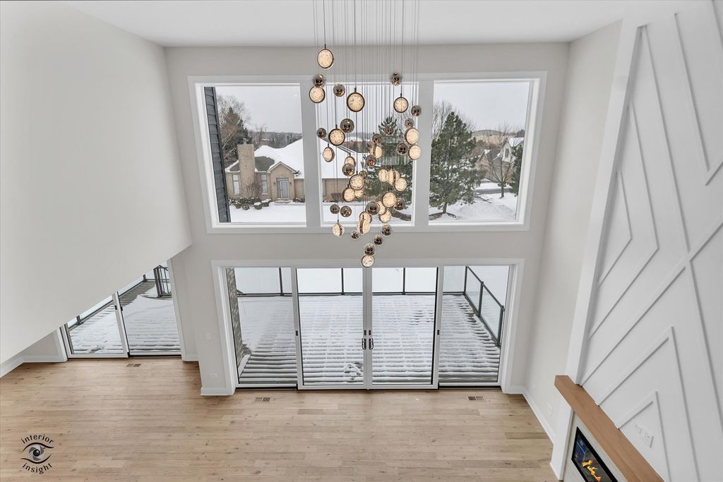 Welcome to this stunning 3,856 square foot custom residence offering 4 bedrooms, 3.5 baths, and a full walk-out basement with roughed in plumbing, designed with exceptional craftsmanship and elevated finishes throughout. The home features 9-foot ceilings and a dramatic two-story greatroom highlighted by a striking two-story wood fireplace facade with electric fireplace, creating an impressive focal point. The spacious family room is enhanced by panoramic 16' x 8' sliding glass doors, flooding the space with natural light and seamlessly connecting indoor and outdoor living. The gourmet kitchen showcases custom cabinetry, high-end stainless steel appliances, and thoughtful design ideal for entertaining. The primary suite offers a true retreat with a spa-like bath featuring a walk-in glass shower with body sprays, along with his and her walk-in closets, including custom shelving in the her closet. All secondary bedrooms include walk-in closets, providing generous storage. Additional highlights include white oak custom stairs, detailed woodwork throughout, and high-end custom lighting and bath fixtures. Outdoor living is elevated by a Trex deck with sleek glass panel railings, spanning across two sets of sliding doors and perfect for enjoying the surrounding views. This thoughtfully designed home blends luxury, functionality, and timeless style, making it ideal for both everyday living and elegant entertaining.