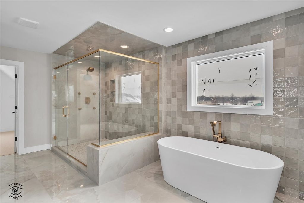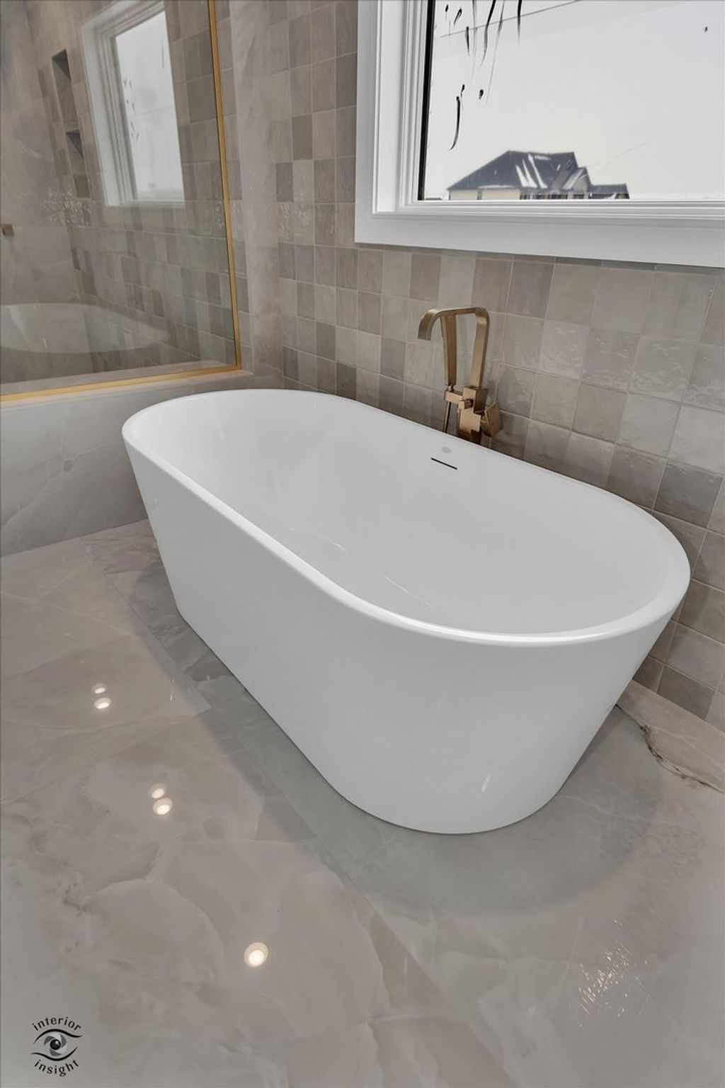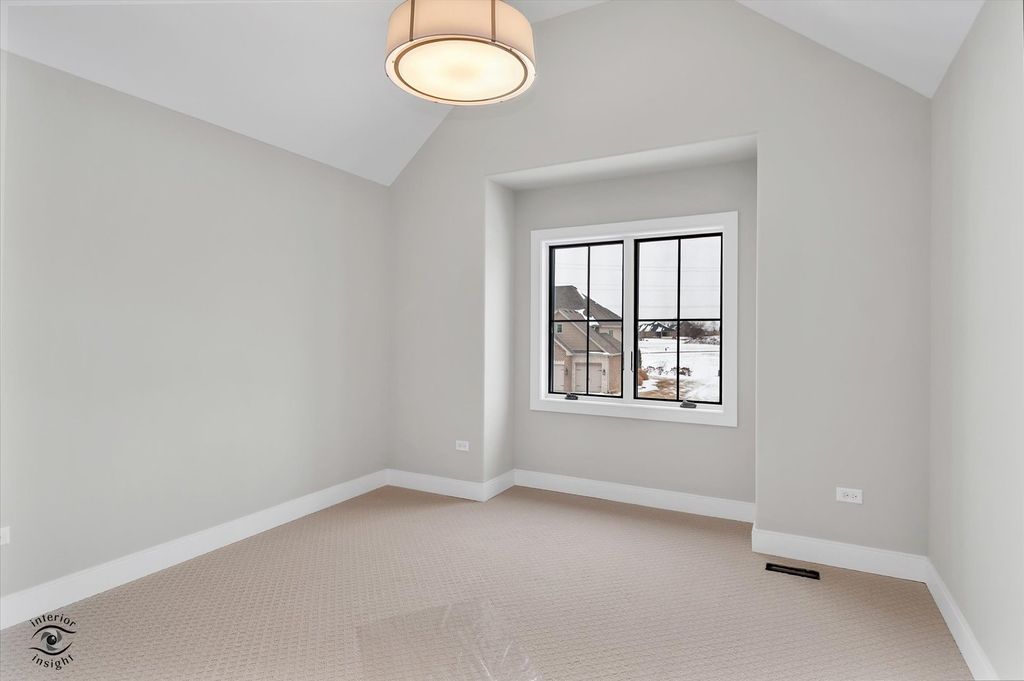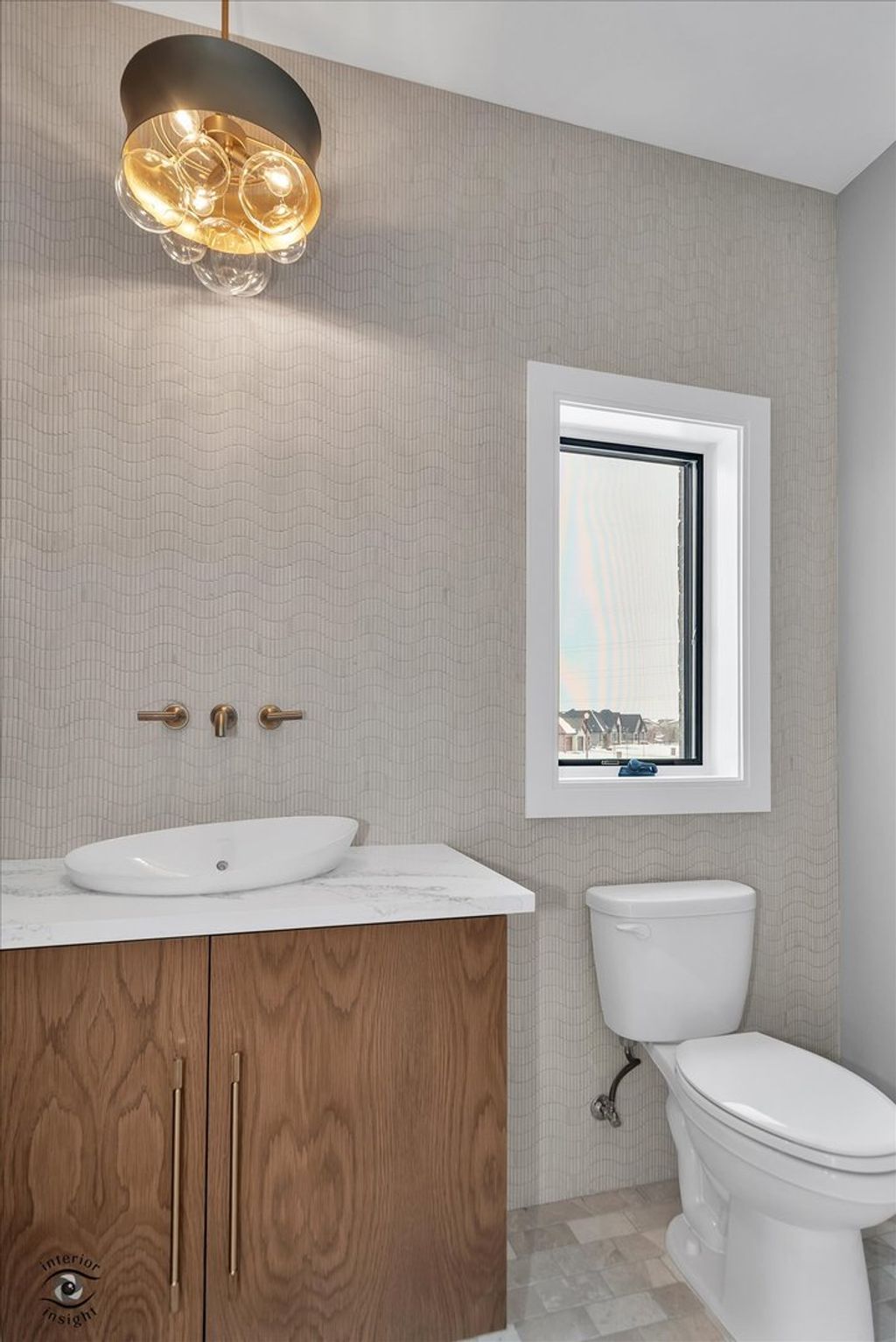 Welcome to this stunning 3,856 square foot custom residence offering 4 bedrooms, 3.5 baths, and a full walk-out basement with roughed in plumbing, designed with exceptional craftsmanship and elevated finishes throughout. The home features 9-foot ceilings and a dramatic two-story greatroom highlighted by a striking two-story wood fireplace facade with electric fireplace, creating an impressive focal point. The spacious family room is enhanced by panoramic 16' x 8' sliding glass doors, flooding the space with natural light and seamlessly connecting indoor and outdoor living. The gourmet kitchen showcases custom cabinetry, high-end stainless steel appliances, and thoughtful design ideal for entertaining. The primary suite offers a true retreat with a spa-like bath featuring a walk-in glass shower with body sprays, along with his and her walk-in closets, including custom shelving in the her closet. All secondary bedrooms include walk-in closets, providing generous storage. Additional highlights include white oak custom stairs, detailed woodwork throughout, and high-end custom lighting and bath fixtures. Outdoor living is elevated by a Trex deck with sleek glass panel railings, spanning across two sets of sliding doors and perfect for enjoying the surrounding views. This thoughtfully designed home blends luxury, functionality, and timeless style, making it ideal for both everyday living and elegant entertaining.