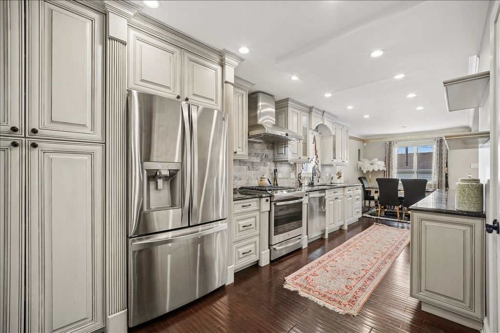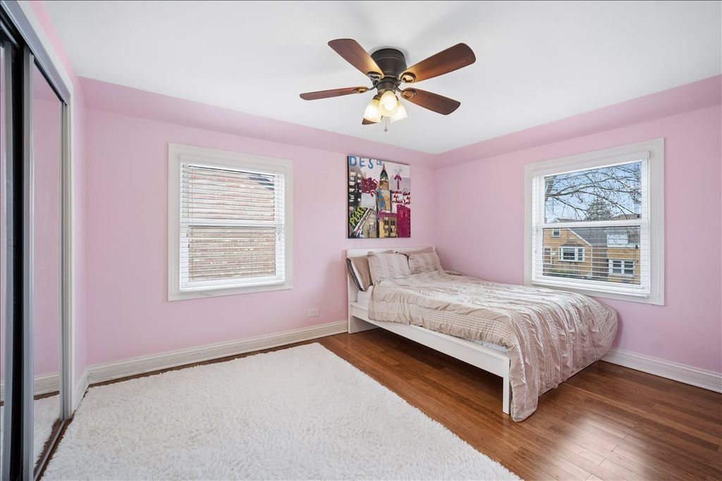 Gorgeous home-truly one of a kind! This completely updated and spacious 3-bedroom, 2-bath brick Georgian sits on a quiet, tree-lined block in desirable River Grove. Offering approximately 1,800 sq ft of beautifully finished living space, this home combines classic charm with modern updates. Featuring hardwood floors throughout, the main level showcases a gourmet eat-in kitchen with custom 42" cabinetry, granite countertops, stainless steel appliances, and a breakfast bar that opens to a generously sized family room with an electric fireplace. Sliding patio doors lead to a massive custom deck and a private, new vinyl-fenced backyard-perfect for entertaining. The first floor also includes an updated full bathroom with a Kohler Jacuzzi tub and separate shower. Upstairs, you'll find three spacious bedrooms and a fully updated bath, all enhanced by rich dark oak hardwood flooring. Furnace and Hot Water Tank (2025) Roof (2016). The finished basement offers a recreation room, extra storage, and a laundry area. Exterior features include a beautifully landscaped yard, a 2.5-car garage, and a concrete side drive-ideal for additional parking. Located close to schools, parks, and local amenities. Impeccably maintained and move-in ready-this home truly has it all!