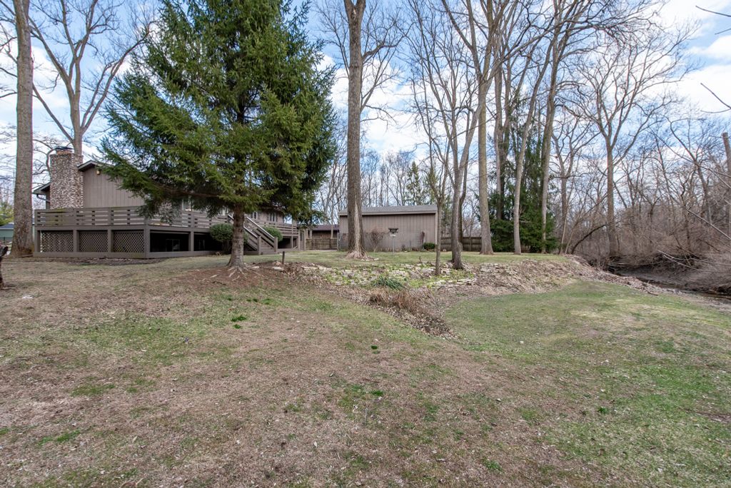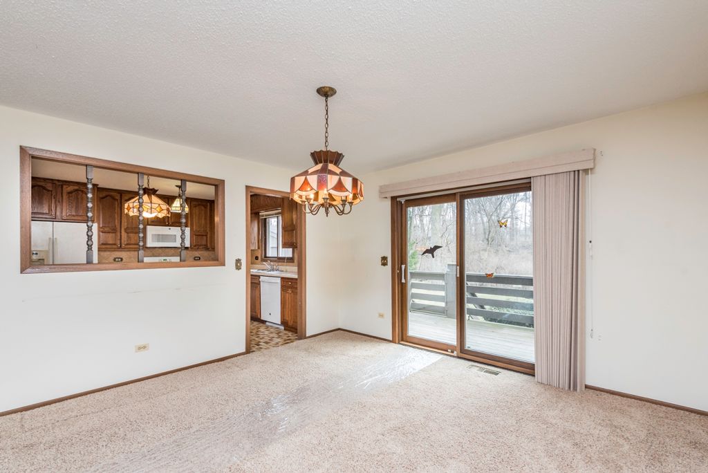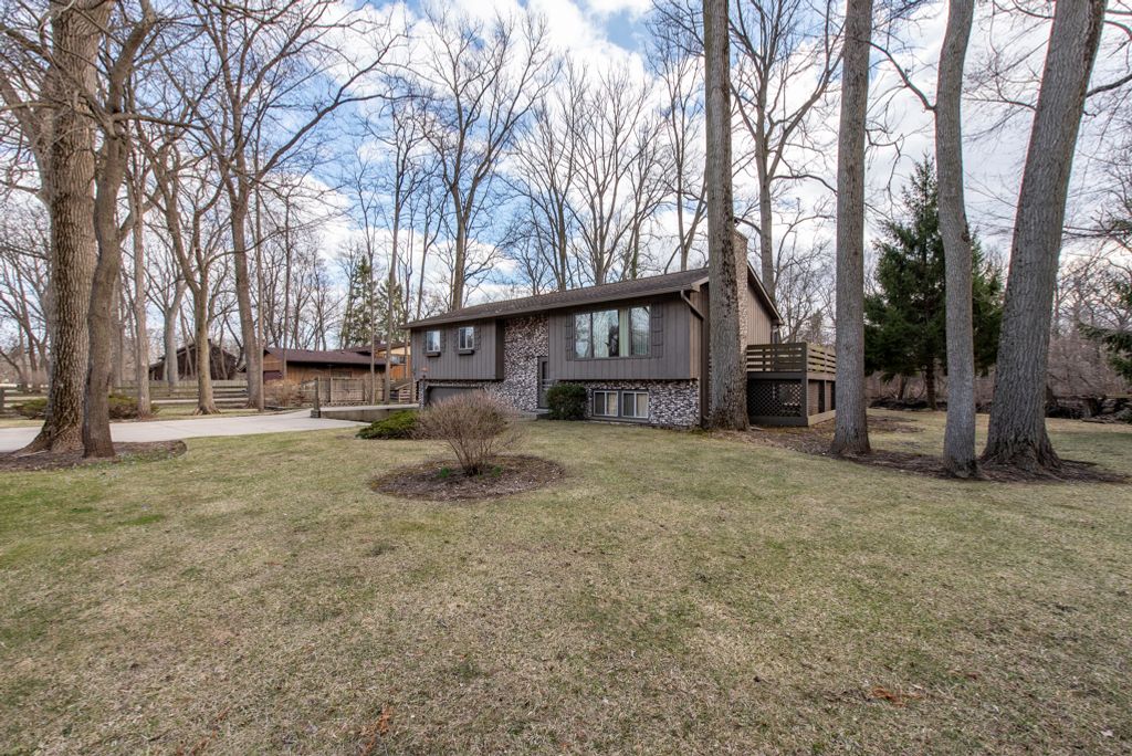 WOWZA - this is a truly special one-owner raised ranch built in 1979 and beautifully maintained, set on two PINs totaling 1.11 acres (48,352 sq. ft.) along scenic Kellogg's Ravine in Benton Township with sought-after Winthrop Harbor Grade Schools, and just minutes from Camp Logan Beach. Offering 2,192 square feet, this 3-bedroom, 2-bath home combines space, privacy, and exceptional storage with a peaceful natural backdrop. The main floor features a spacious living room with a wood-burning fireplace with gas starter, a beautiful bay window installed in 2015, and an open dining area with sliding glass doors leading to the wraparound deck overlooking the ravine, creek, and wooded views. The custom blinds, curtains, and window treatments in the living and dining rooms (2021) all stay. The kitchen includes all appliances and flows nicely into the main living spaces. Bedrooms 1 and 2 are located on the main floor along with a full bath. Bedroom 2 is especially spacious and was originally designed as two separate bedrooms, with the door frame still inside the wall for easy conversion back to a 4-bedroom layout if desired. The lower level offers additional living space with a cozy family room featuring a second fireplace and custom oak built-in bookshelves, along with bedroom 3, a full bath, laundry, and excellent storage. Outside, this property truly stands out with an attached garage plus an impressive 20' x 30' outbuilding garage with an additional 12' x 30' lean-to, serviced heater, and alarm system. Also outside you'll find a dog run, woodshed, west side yard with stacked firewood, flagpole, and a large stone fire pit ring, making it ideal for hobbyists, extra vehicles, entertaining, or workshop space. The beautifully landscaped grounds are filled with flower gardens and hostas throughout - truly a gardener's dream. Major updates include house roof and woodshed shingles (2012), gutters (2019), outbuilding roof (2022), furnace (2006, serviced yearly and checked Oct 2025), central air (2018, serviced yearly), sliding glass door and bay window (2015), and the home and carpets were professionally cleaned in January 2026. Per seller, this home is located in a quiet neighborhood with wonderful friendly neighbors. Additional peace of mind includes alarms on both the house and outbuilding, and per seller, the sump pump in the attached garage has never had water and the home has never flooded, although flood insurance is currently required (seller currently pays approximately $1,147/year through American Family Insurance). A rare opportunity to own a lovingly cared-for property with acreage, privacy, flexible living space, and unmatched outbuilding storage. Come take a look!