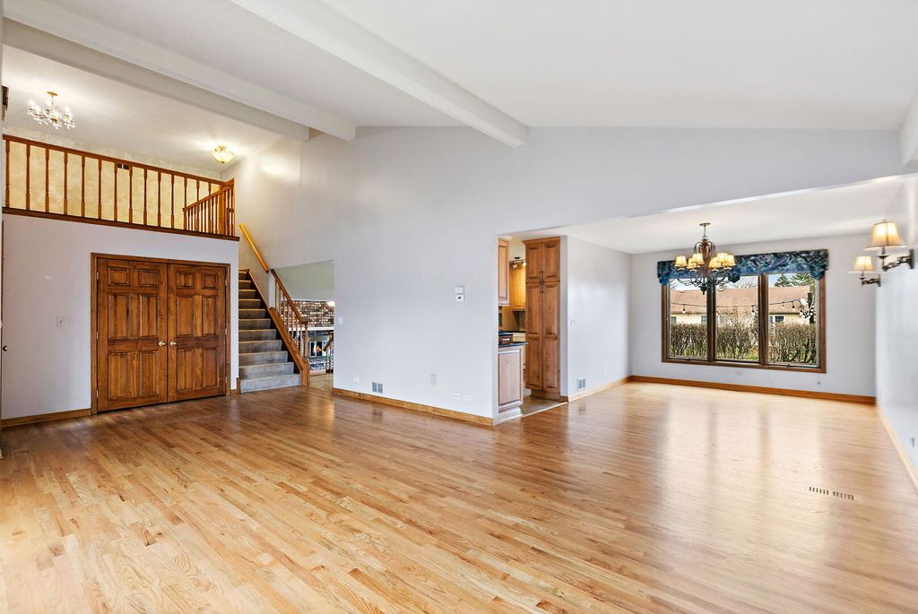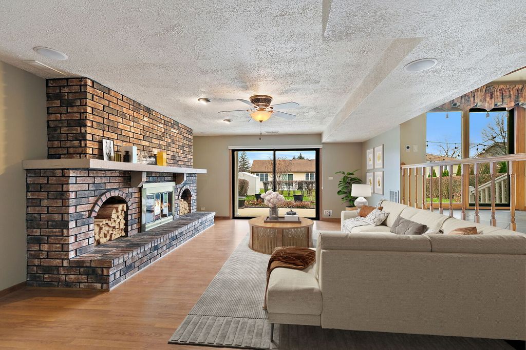 Welcome to this spacious home in sought-after Farmwood Estates, featuring a brick and upgraded no-maintenance fiber cement exterior. Inside, enjoy the spacious layout with a cozy family room offering a fireplace and radiant heated floors. The chef's kitchen is thoughtfully designed with custom cabinetry, double oven, down draft ventilation, and extra-deep drawers-where every inch has a purpose and no space is wasted. Generous bedrooms include a primary suite with three closets, fireplace, convenient attic access and a trex balcony overlooking the beautiful yard. A loft overlooks the large living room, and custom window treatments add style throughout. The finished basement offers a rec area, and ample storage with built-in shelving. Step outside to a two-level patio with market lights overlooking a beautifully landscaped yard-perfect for entertaining. You will love this prime location just minutes from Lake Street shopping, dining, and easy interstate access. Patio market lights, custom curtains and stove in basement convey with the home. Roof (2017); Fridge (2023); Double Oven, Dishwasher and Microwave (2016)