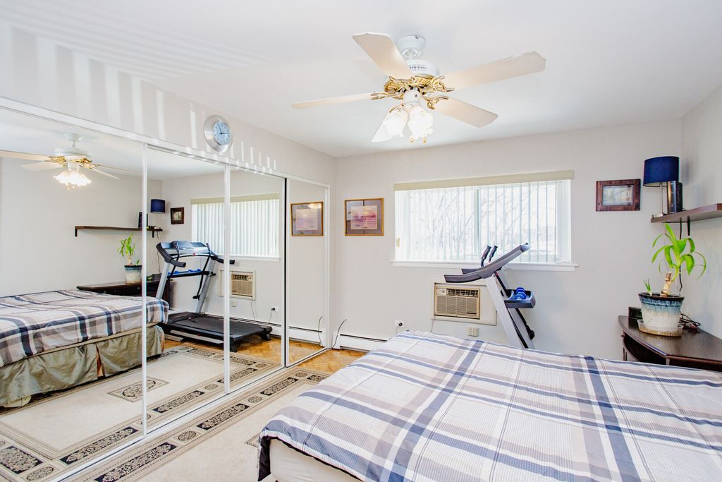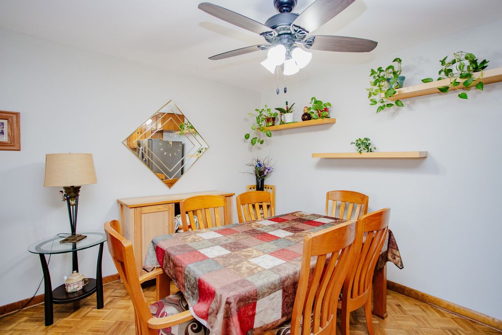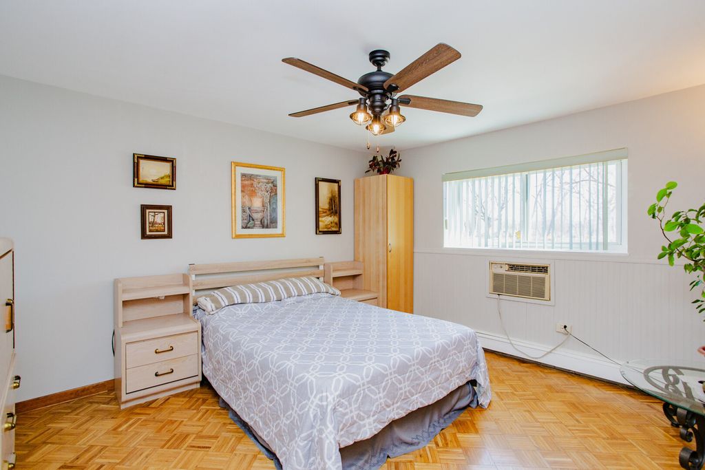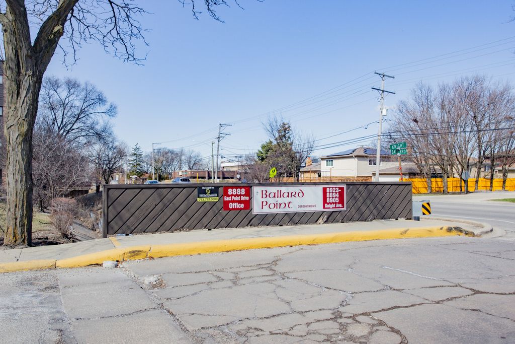 Located in the Ballard Point subdivision of unincorporated Des Plaines, this first-floor end-unit condo offers a bright and functional layout with natural light and excellent proximity to Gemini Middle School and Maine East High School. The unit features parquet hardwood and ceramic tile flooring, two generously sized bedrooms, and two full bathrooms, including a spacious primary suite with a remodeled bath, walk-in closet, and shower. The kitchen is appointed with granite countertops and stainless steel appliances, a walk-in pantry and opens seamlessly to the dining and living areas, with a sliding door leading to a large East-facing patio with privacy hedges-perfect for outdoor relaxation. Additional highlights include replacement double-pane windows and sliding doors, three wall A/C units, ceiling fans, mirrored closet doors, ample storage, a basement storage locker, coin laundry, and two parking spaces in a secure elevator building with intercom access. The well-maintained complex offers a wide range of amenities including an outdoor pool, tennis courts, volleyball and basketball courts, park/playground, pond, clubhouse, and on-site management, with assessments covering heat, water, gas, parking, common insurance, exterior maintenance, lawn care, scavenger, and snow removal. Ideally located near Golf Mill and Rosemont shopping and entertainment, Lutheran General Hospital, O'Hare Airport, and major expressways (I-294/I-90/I-190) for easy commuting. Rentals are allowed; pets are not permitted. Please note: due to upcoming roof and parking lot improvements (special assessment paid in full), the property will not qualify for conventional, FHA, or VA financing at this time-cash or non-conforming loans with 20%+ down required.