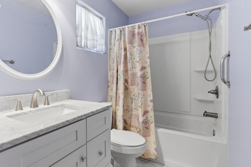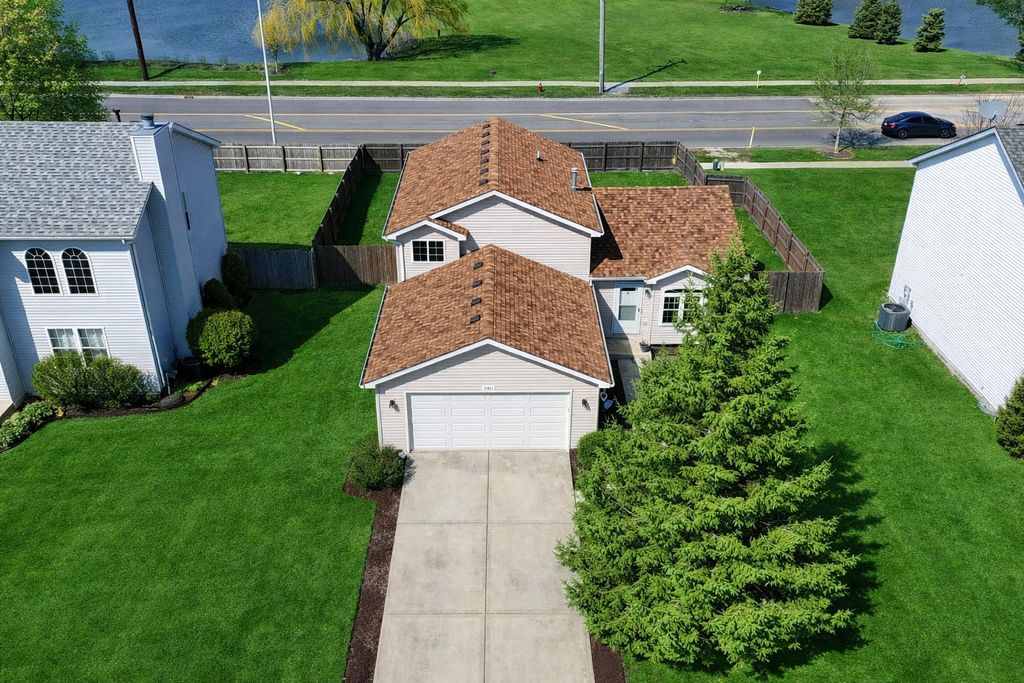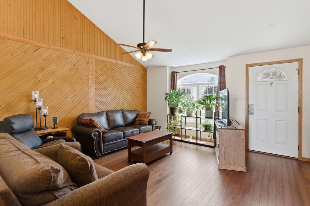 Welcome to this updated 4-bed home in Riverbrook Estates featuring a functional split-level layout with sub-basement and over $50,000 in recent updates including New Roof in 2022 and New Furnace in 2020! The main level offers a bright living room with vaulted ceilings, hardwood floors, updated lighting, and an updated front window (2022). The kitchen has been refreshed with quartz countertops, new tile flooring, stainless steel appliances, abundant cabinet space, updated lighting, and a sliding glass door replaced in 2022 that leads to the fully fenced backyard. The eating area continues the hardwood flooring and open flow. The lower level includes a spacious family room with shiplap detail, updated ceiling fan, new carpet, a fourth bedroom, and a fully updated half bath with new tile flooring, vanity, and lighting. Upstairs, the primary bedroom features new carpet, a walk-in closet, and a convenient second-floor laundry closet with stackable washer and dryer. Two additional bedrooms offer new carpet, ceiling fans, and ample closet space. The back 2 bedrooms have beautiful water views of the pond behind the property. The full bathroom has been recently updated with new flooring, vanity, mirror, lighting, and a refreshed shower/tub combo. The sub-basement provides excellent storage, additional laundry with washer & dryer, and mechanicals with future finishing potential. Exterior highlights include an interior lot, no rear neighbors, a fully fenced backyard with a 6-foot privacy fence, and a paver patio. The 2.5-car attached garage includes a new garage door in 2024 and opener replaced in 2020. This home is move-in ready! All appliances stay! Schedule your showing today!