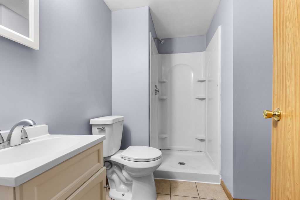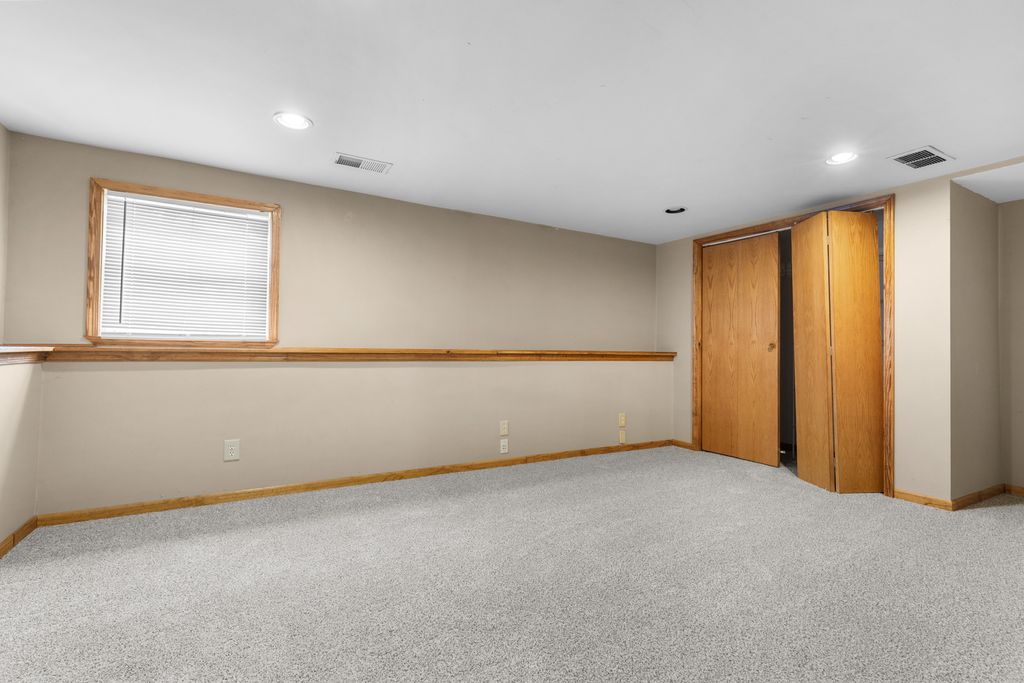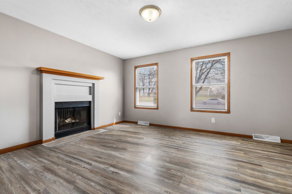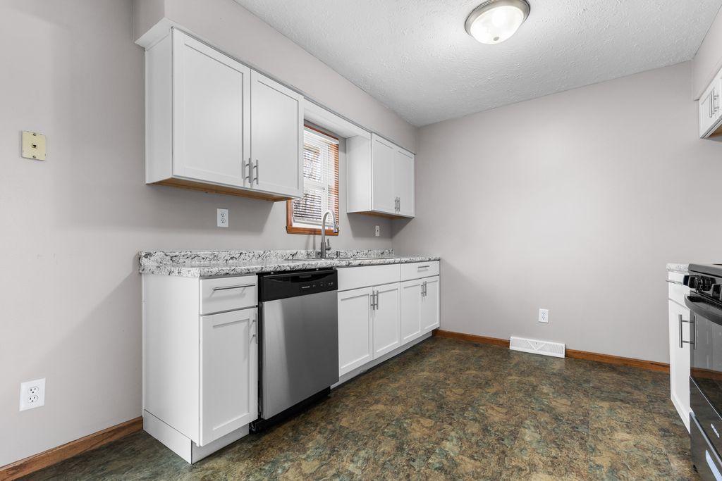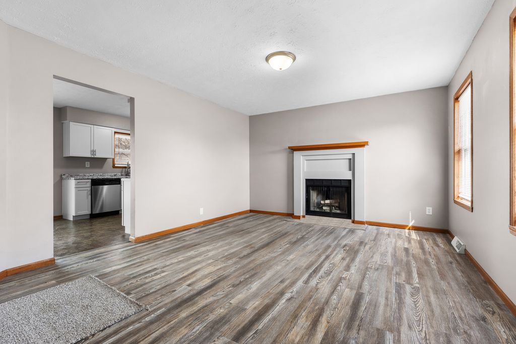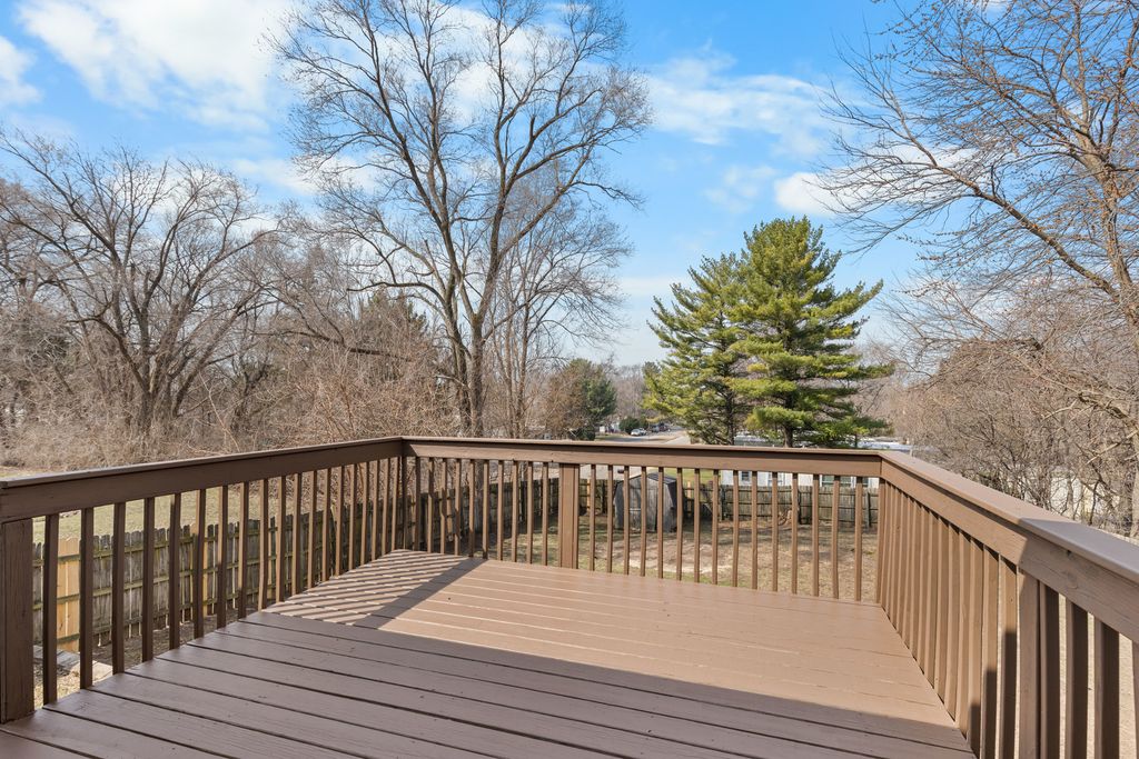 Spacious ranch home featuring 3 bedrooms, 2 bathrooms, and an attached 2-car garage. The main level offers a large living room with vinyl plank flooring and a cozy wood-burning fireplace. Brand new kitchen with white shaker cabinets, laminate countertops, and new stainless steel appliances, plus a dining area with a sliding patio door leading to the wooden deck. Two bedrooms are located on the main floor, including the primary bedroom with a walk-in closet. The finished lower level has brand new carpet and includes a spacious third bedroom, rec room, and full bathroom. Fenced backyard with a garden shed. Water heater replaced in 2025. Great location only minutes from US-20, Rockford Airport and I-39.