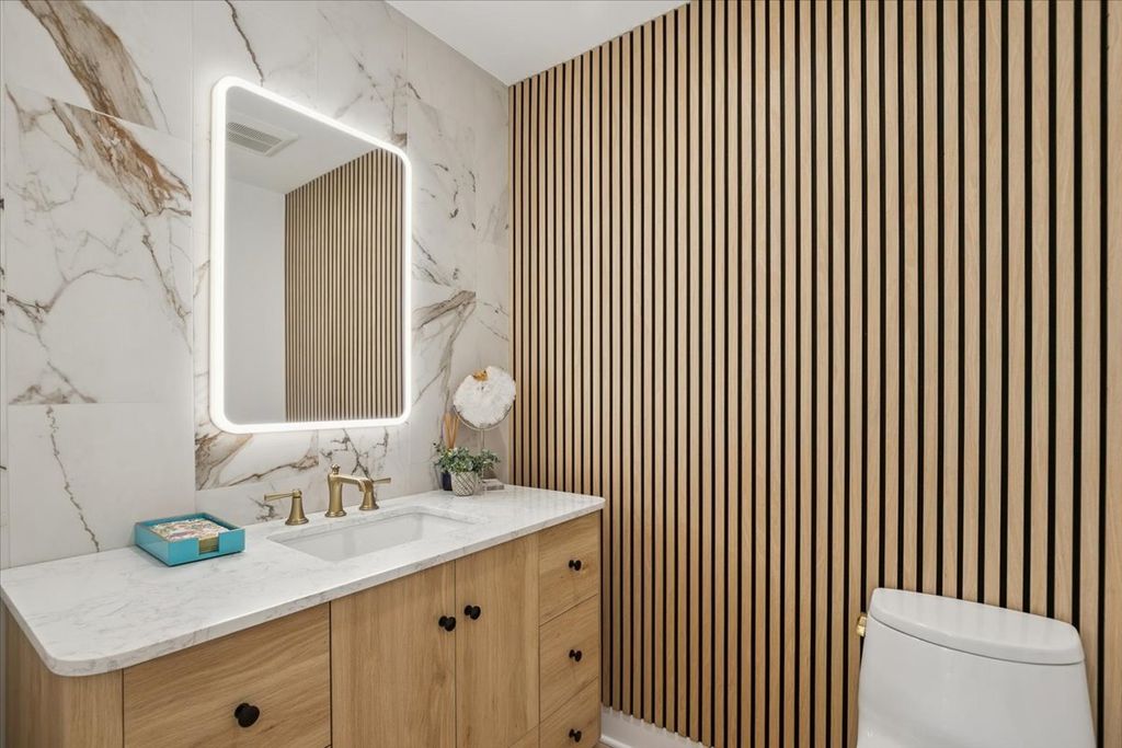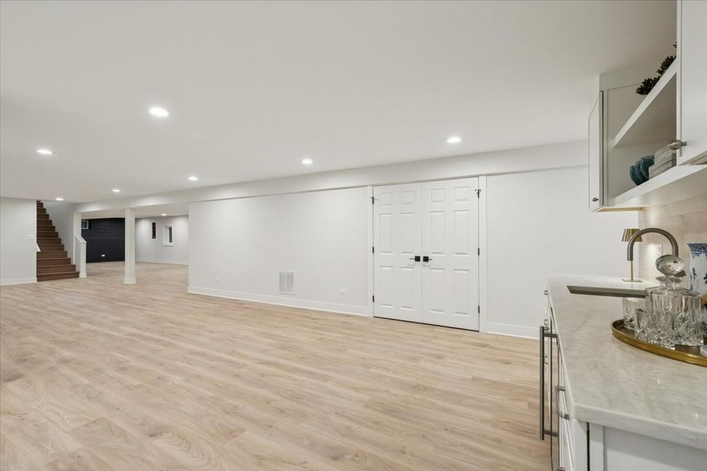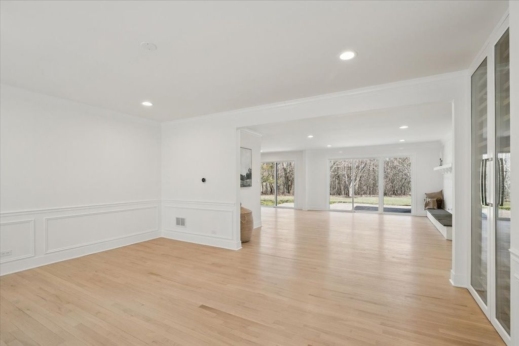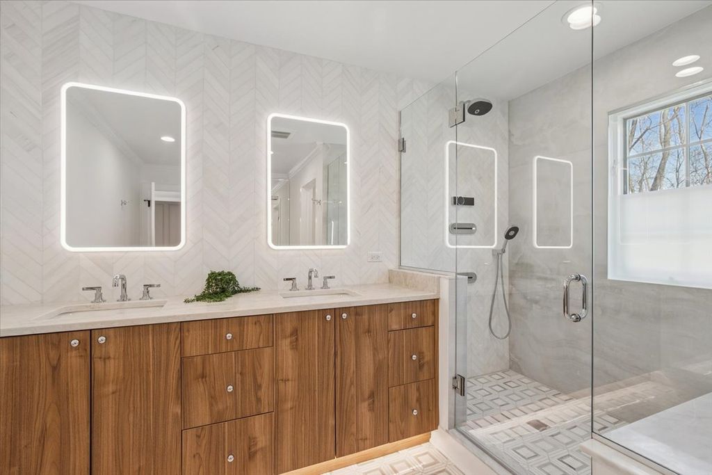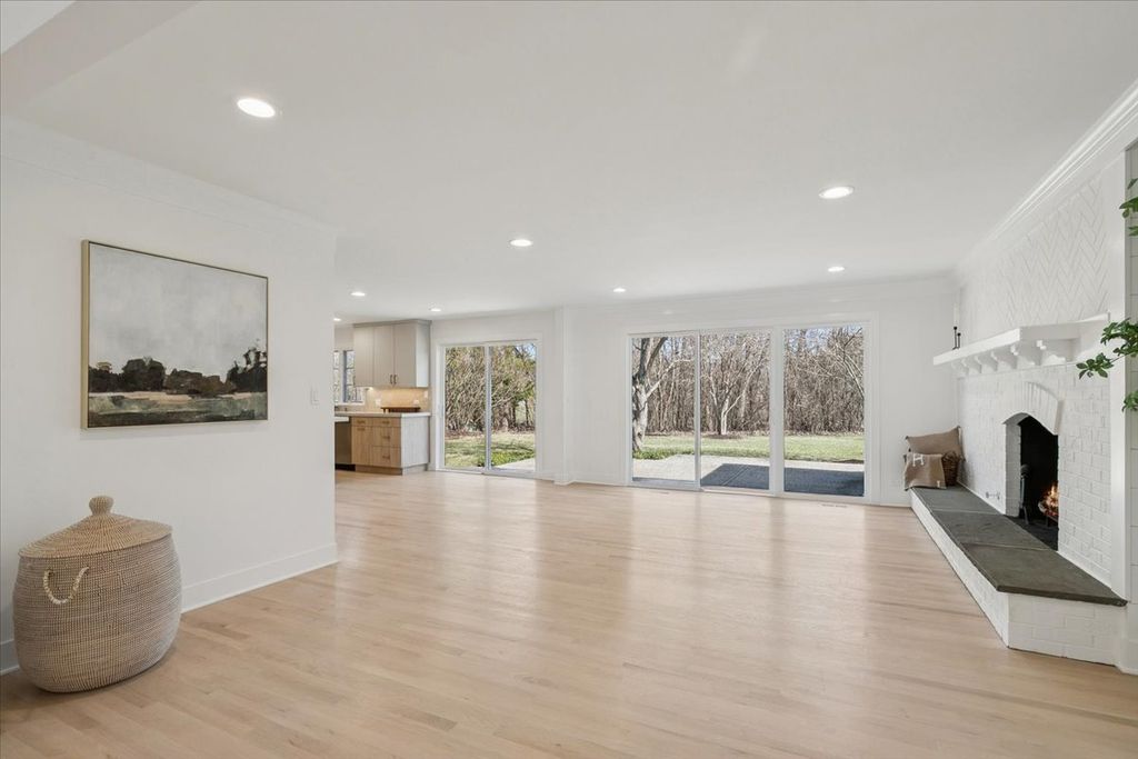 Masterpiece transformation-completely renovated in 2026. This 4-bedroom, 3.5-bath brick ranch offers a rare opportunity for true one-level living in the desirable Ponds area. Over 5800 sqft of finished space, refined luxury and bright, airy living areas. Set on a private half-acre cul-de-sac, this home delivers both space and convenience. Stunning marble foyer entrance greets an airy, open-concept layout with refinished hardwood floors throughout. The show stopping kitchen features an oversized waterfall Quartzite island, custom cabinetry, Walk-in pantry, and a premium Bosch appliance package. Expansive living and dining areas provide multiple seating spaces filled with natural light. Dining area with large wine storage. 2 fireplaces and living areas that welcome. The primary suite is a true retreat with a spa-inspired bath featuring designer tilework, walk-in shower, soaking tub, Quartzite finishes, and luxury fixtures. 2 additional bedrooms and second full bath are equally elevated. A stylish, functional laundry room and powder room complete the main level. The fully finished lower level adds an additional 2,900 sqft with a 4th bedroom, full bath, wet bar, recreation space, fitness area, and abundant storage. Ideally located near town, beach, train, and highway. The Ponds subdivision features three stocked ponds ideal for fishing, scenic walking paths throughout the neighborhood, and direct access to Waveland Park.