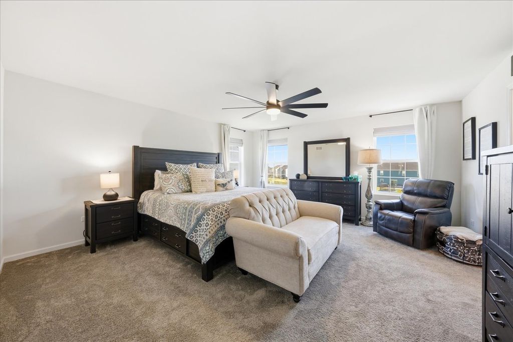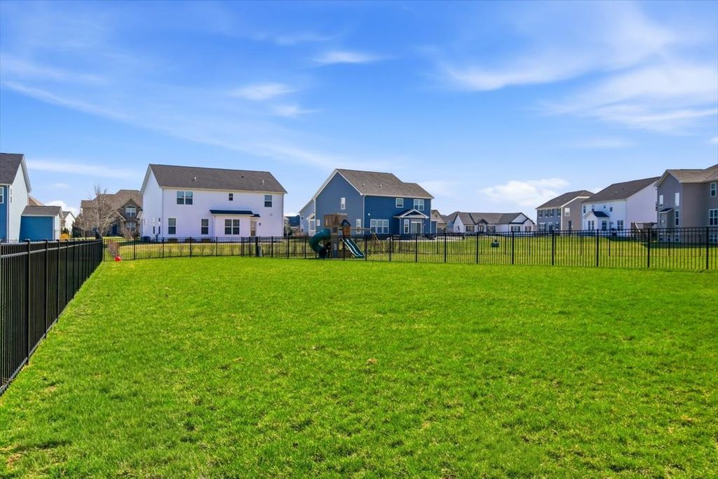The only home currently available in the sought-after community of Westminster Gardens-built in 2022 and loaded with upgrades-this is truly better than new. Perfectly positioned on a premium corner lot with a fenced yard, this home offers over 3,000 sq. ft. of beautifully designed living space, plus a full lookout basement roughed in for a future bath and ready for expansion. The main level delivers both function and style, featuring a formal dining room, a private office with French doors, and a spacious open-concept layout that seamlessly connects the kitchen, living room, and dinette-all accented with windows that flood the space with natural light. The kitchen is a standout with 42" black onyx cabinetry, stainless steel appliances, quartz countertops, abundant storage, a wraparound counter perfect for entertaining, and a walk-in pantry. A convenient back hallway leads to the three-car garage and a versatile bonus room-ideal for a 5th bedroom, playroom, or flex space. A striking U-shaped staircase connects all three levels. Upstairs, you'll find a loft area and a luxurious primary suite behind French doors, complete with a spa-inspired bath featuring dual vanities, a beautifully tiled walk-in shower, and an oversized walk-in closet. All additional bedrooms are generously sized and have walk-in closets. Thoughtfully appointed with Mannington laminate flooring, designer lighting, modern paint tones, white panel doors, and oversized trim-this home shows like a model. Located in the highly acclaimed Minooka School District with convenient access to shopping, dining, parks, and interstates.This is a true 10+ home-don't miss it.