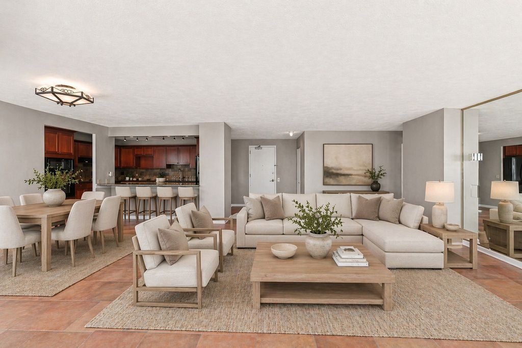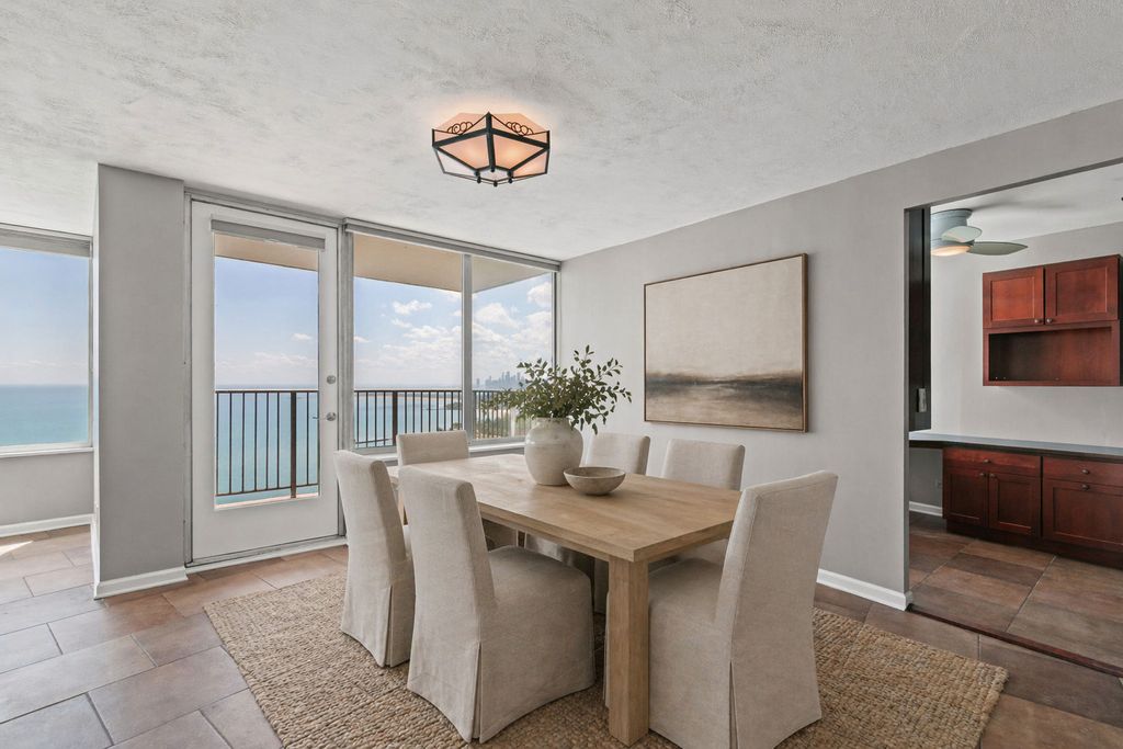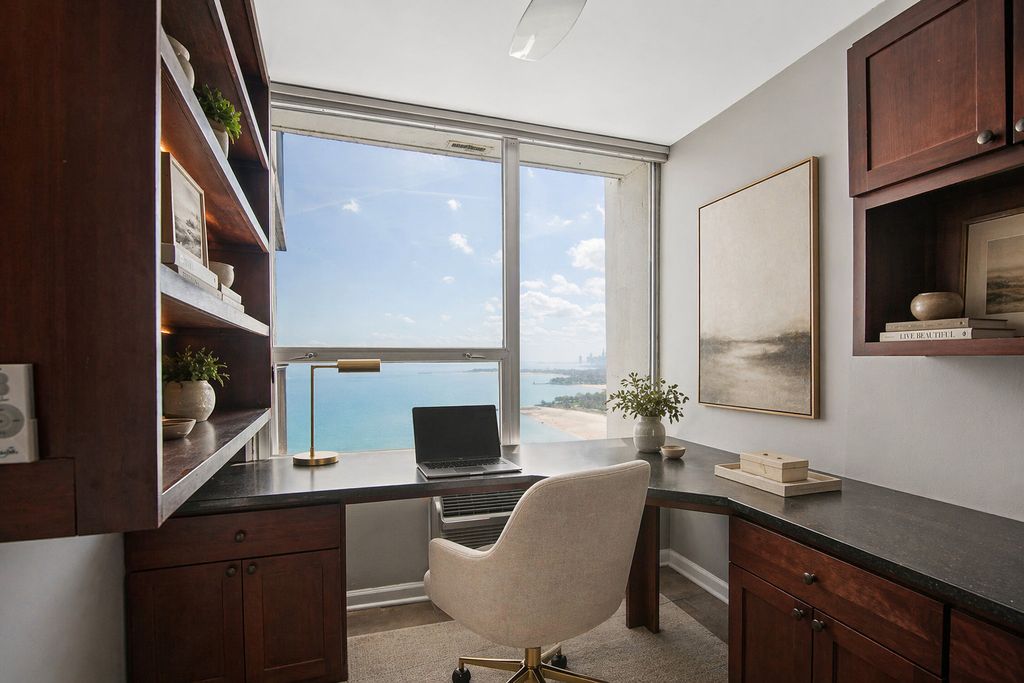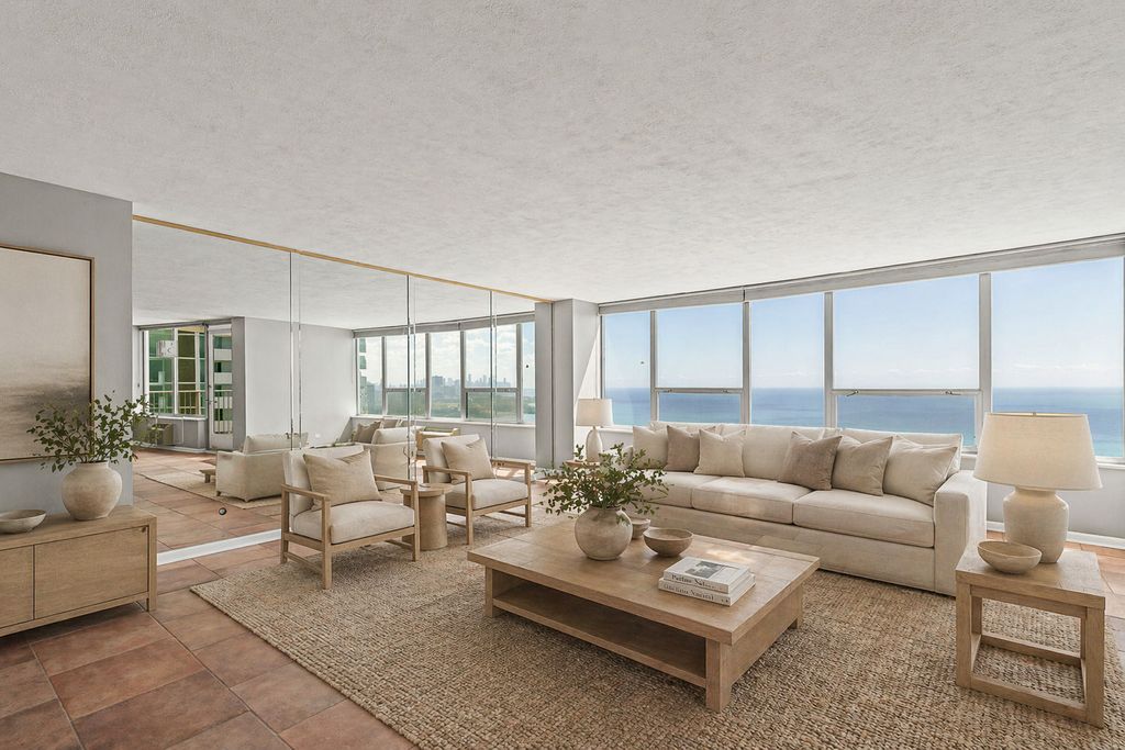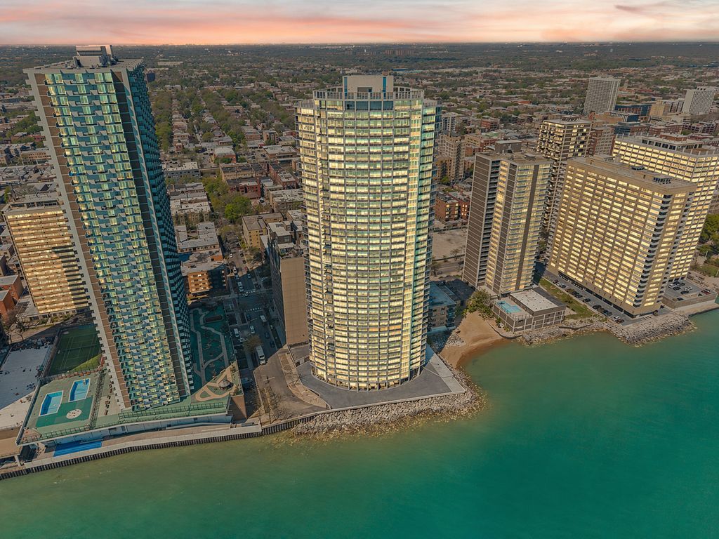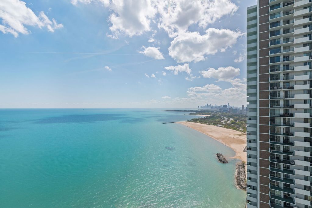 Experience exceptional lakefront living in this stunning 2-bedroom, 2-bath B-tier residence. This thoughtfully designed floor plan features all rooms facing east, offering breathtaking panoramic views of the vibrant blue waters of Lake Michigan, the city skyline, and the beachfront. The home boasts a spacious, open-concept kitchen perfect for entertaining, along with a dedicated office nook overlooking the lake-ideal for working with a view. Enjoy the rare luxury of lake vistas from every room. Additional highlights include generously sized bedrooms, natural stone tile flooring in the living and kitchen areas, brand-new carpet in the bedrooms, and fresh paint throughout. Convenience is key with in-unit laundry, a large walk-in laundry closet, and ample storage. Step outside to your expansive private balcony/terrace, where you'll take in unobstructed views of Hollywood Beach, Lake Shore Drive, and the scenic shoreline and parks. Full-amenity building features include a fitness center, party room, rooftop pool, 24-hour door staff, and on-site management and maintenance. Located just steps from the beach, this vibrant neighborhood offers the best of city living with easy access to lakefront recreation, dining, and more. Lakefront living at its finest.
