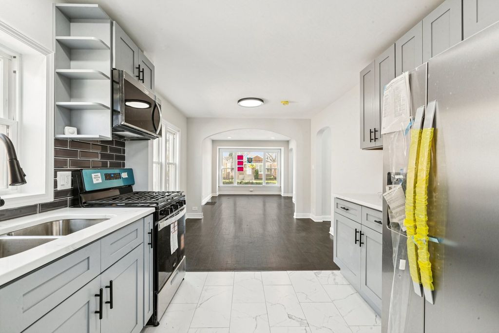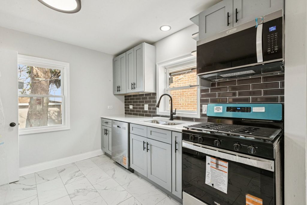 Fully updated and move-in ready, this solid brick raised ranch in the heart of Riverdale offers the perfect blend of modern finishes, functional layout, and long-term value. Step inside to a sun-drenched living room featuring a large picture window with eastern exposure, creating a bright and inviting atmosphere. The main level showcases beautifully refinished hardwood floors and includes two generously sized bedrooms along with a seamless flow into the dining area and fully updated kitchen. The kitchen has been completely renovated with new cabinetry, quartz countertops, and a stainless steel appliance package-designed for both everyday living and entertaining. The lower level expands the living space with a spacious family room, third bedroom, and a fully updated second bathroom, making it ideal for extended living, guests, or additional privacy. Waterproof flooring runs throughout the basement, and the home is equipped with a new drain tile system and sump pump, offering peace of mind and long-term protection. This property also includes a 2-car garage and sits in a prime location with easy access to I-57, I-94, and nearby public transportation. Whether you're looking for a primary residence or a strong rental investment, this home delivers on layout, updates, and location.