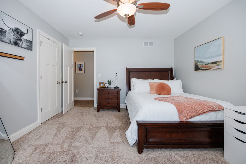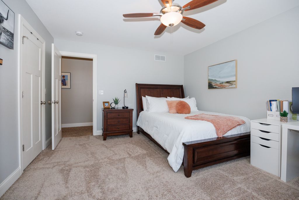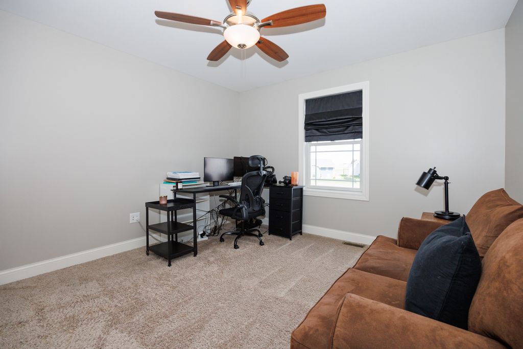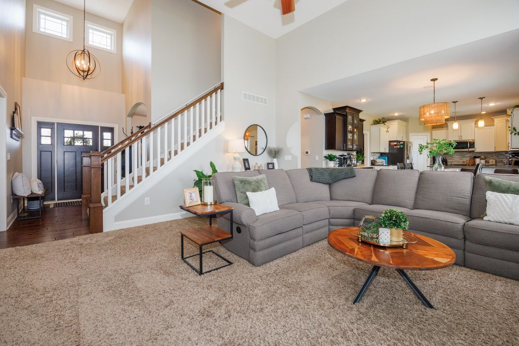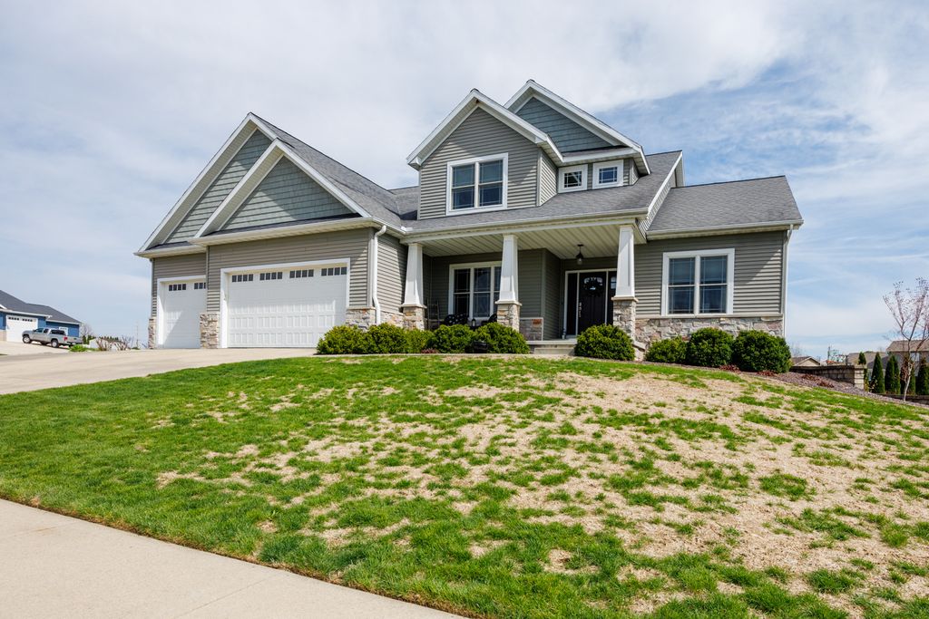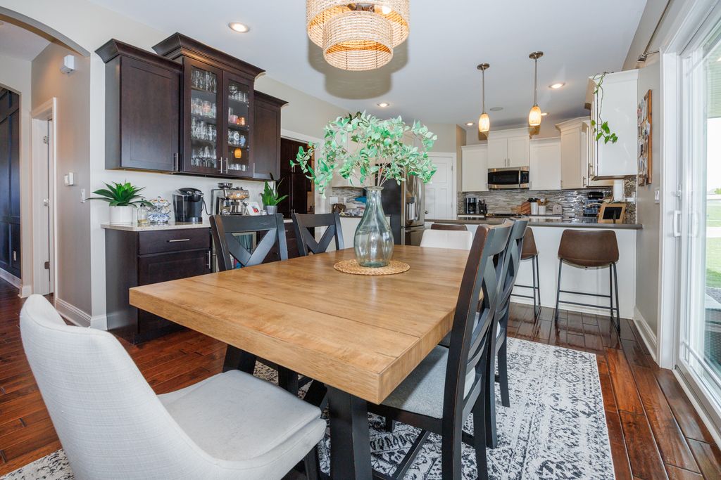 Welcome to 114 Mallard Way in Hudson-an exceptional one-owner, custom-built home offering space, quality, and thoughtful design throughout. Situated on nearly a half-acre cul-de-sac corner lot with no immediate backyard neighbors, this stunning 5-bedroom, 3.5-bath property delivers the perfect blend of comfort and privacy-paired with small-town charm just minutes from all the amenities of Bloomington-Normal. Step inside to a bright and inviting two-story living room that creates an open, airy feel, complemented by beautiful wood flooring that flows through the dining area and kitchen. The main floor primary suite provides convenience and privacy, making everyday living effortless. Upstairs, you'll find a functional desk area just outside the large bedrooms-perfect for a home office, study space, or homework station. The daylight window basement is an entertainer's dream, featuring a full wet bar, expansive living space, and massive storage options. Outside, the professionally landscaped yard offers incredible curb appeal, while the large concrete play pad provides the perfect space for recreation and gatherings. Enjoy the extra-deep, heated 3-car garage-ideal for vehicles, storage, or a workshop. This is a rare opportunity to own a meticulously maintained, custom home that offers the best of both worlds-peaceful small-town living with access to everything Bloomington-Normal has to offer.