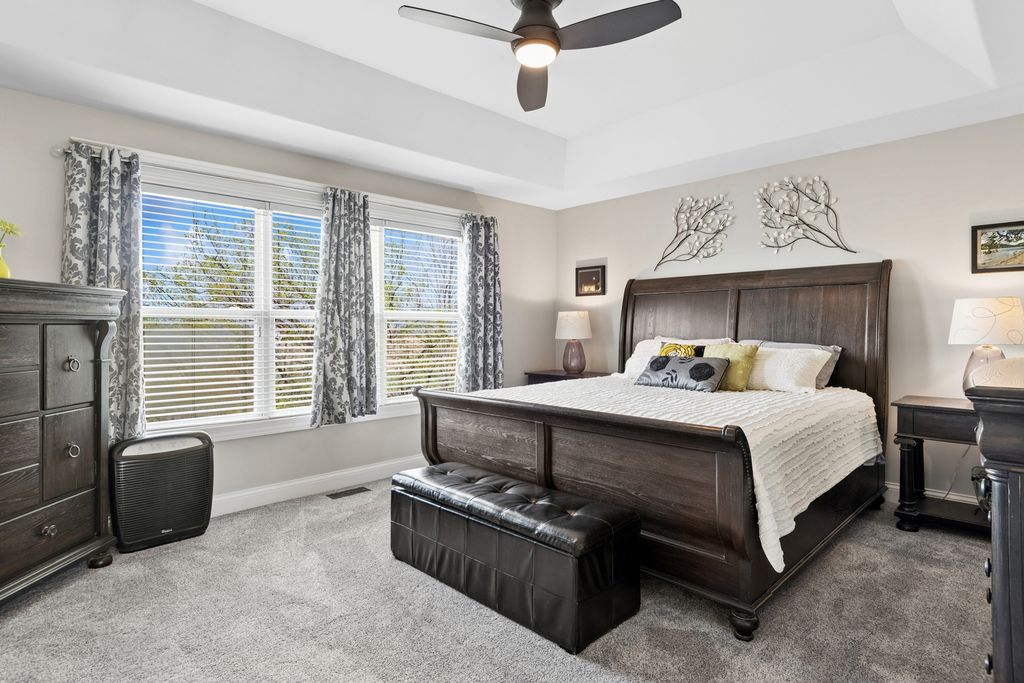 Welcome to Wallin Woods - Where Style, Space, Comfort, AND Location Come Together! This beautifully maintained home offers the perfect blend of elegance, style, and functionality. Step into formal living and dining rooms ideal for entertaining, and enjoy a white gourmet kitchen that opens seamlessly to a eating area & spacious family room with a cozy fireplace. A versatile main-floor office or sunroom is flooded with natural light and leads directly to a large stone paver patio and private fenced yard-perfect for relaxing or hosting guests. Upstairs, the impressive primary suite features soaring cathedral ceilings, a generous walk-in closet, and a luxurious en-suite bath. A loft area overlooking the foyer adds architectural interest, along with three additional bedrooms and an updated hall bath. The finished basement expands your living space with a theatre room, plus additional areas for a home gym, playroom, 2nd family room, along with ample storage. Located in sought-after Wallin Woods, this home is just a short walk to parks, downtown Plainfield, and a variety of local amenities. (Updates include: New roof, carpet, & concrete sidewalk from driveway to back patio).