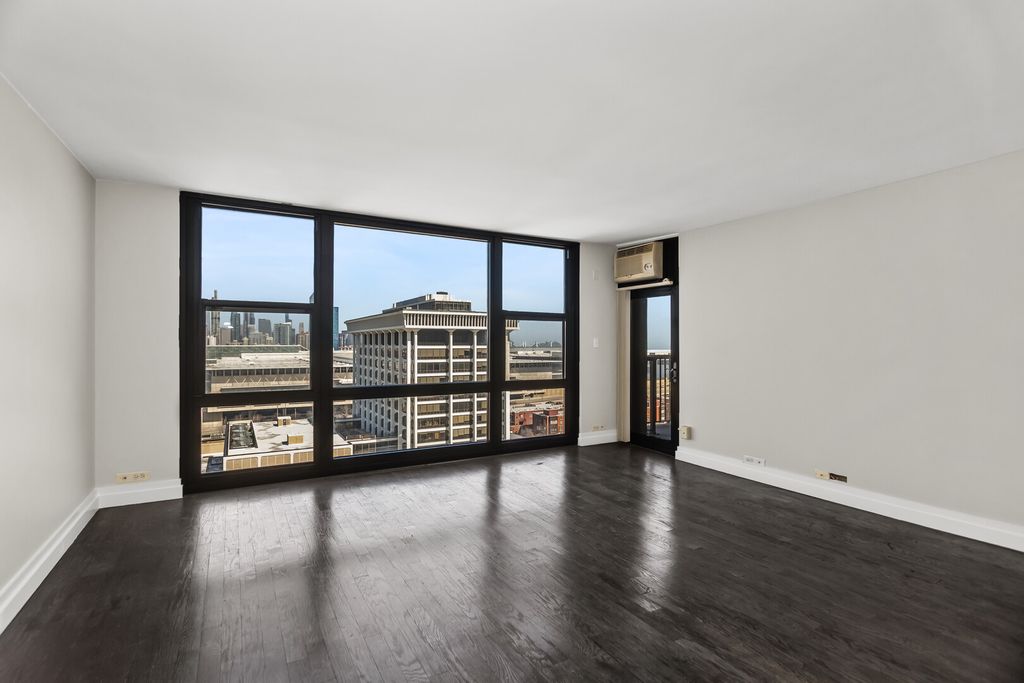 Welcome home to your oasis in the sky, offering jaw-dropping city and lake views. This spacious 1-bedroom, 1-bath residence features an open-concept layout ideal for both everyday living and entertaining. The modern kitchen is fully appointed with granite countertops, a tile backsplash, and under-cabinet lighting. The expansive living area easily accommodates both lounge and dining spaces. Retreat to the king-sized bedroom, complete with professionally organized closets for optimal storage. The bathroom has been recently renovated with a sleek tile surround and updated vanity. The spectacular view can be enjoyed while you grill or savor your favorite beverage from your private balcony. Relish the convenience of a full-amenity building with door staff, on-site management, fitness center, laundry facilities, and a seasonal outdoor pool. Cable and internet are included, and a dedicated secure parking space is also part of the offering. Additional highlights include abundant in-unit storage plus a separate storage cage. Flooring is ready for your personal touch-seller is offering your choice of luxury vinyl plank flooring to be installed prior to closing, or a $7,500 credit. Experience elevated city living with unbeatable views and full-service convenience.