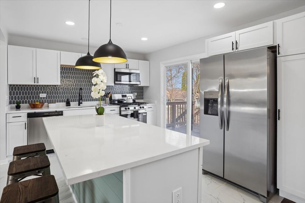 Welcome home to this modern raised ranch blending style and functionality! Featuring 4 beds and 2 baths, this home offers a bright open-concept living and dining area, plus a kitchen with quartz countertops, stainless steel appliances, and sleek finishes. Three bedrooms and a full bath also complete the main level. The partially finished basement adds a family room, 4th bedroom, and full bath, perfect for extra living space. Enjoy the deck and fenced yard, plus an attached 2-car garage. Great location near parks, shopping, and major roads. Book your tour today!
