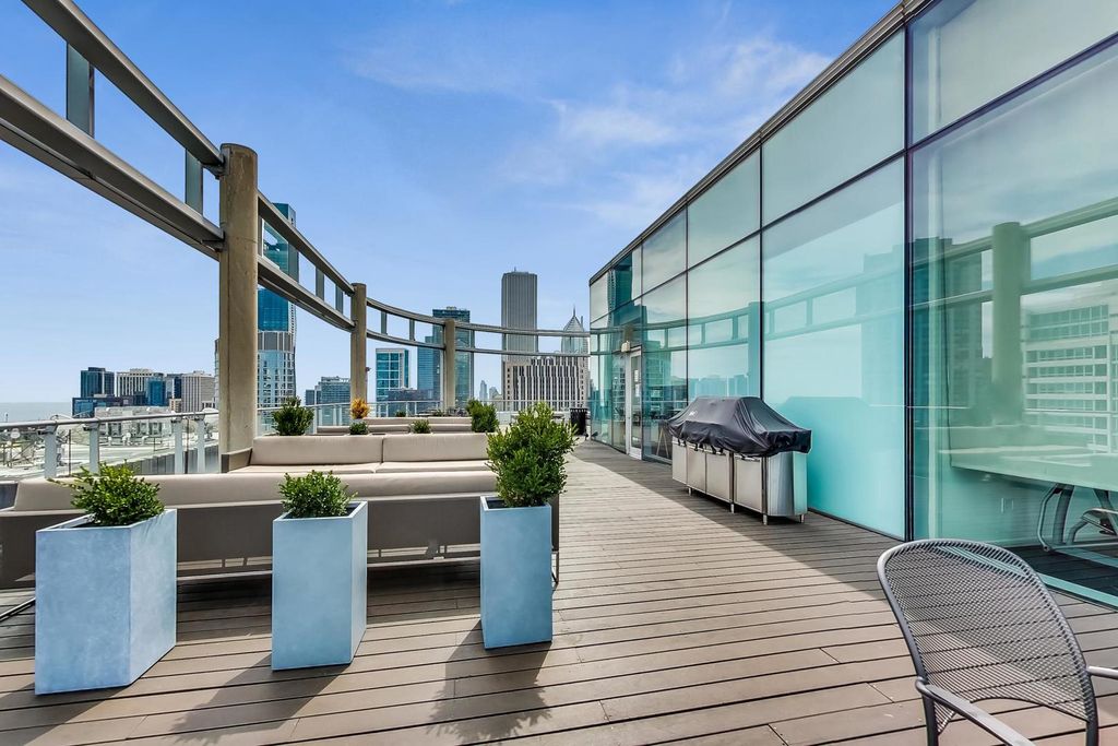 One of Chicago's most architecturally distinguished addresses, 600 N. Fairbanks Ct is a Helmut Jahn-designed tower that has defined the Streeterville skyline since its completion in 2008. This high-floor, north-facing 1-bedroom residence captures the essence of what Jahn intended - light, precision, and an unobstructed relationship between interior space and city. Floor-to-ceiling windows draw in open city views with shimmering sight-lines to Lake Michigan, while consistent northern light gives the home a calm, luminous quality that shifts beautifully throughout the day. The home spans 892 SF of interior space plus a 27 SF private balcony, offering both openness and an intimate outdoor retreat. Hardwood flooring runs throughout the main living areas. The kitchen is outfitted with Snaidero cabinetry, granite countertops, and a full Sub-Zero, Wolf, and Miele appliance suite. The layout flows naturally from living to dining, and the bedroom offers a genuinely quiet retreat with generous closet space and a well-appointed bath featuring a separate shower and double sinks. A Whirlpool in-unit washer and dryer are included, and a dedicated storage locker provides additional convenience. Building amenities are full-service in the truest sense: 24-hour door staff, indoor pool, fitness center, and a rooftop sundeck with unobstructed skyline views. The building also offers a bike room and a package receiving room. A full-time, on-site building manager, engineer, and maintenance personnel ensure responsive support and smooth day-to-day operations. Pet-friendly building. Recent upgrades include a fully refreshed lobby with new furniture, as well as recently upgraded rooftop furnishings. Streeterville is one of Chicago's most walkable and connected neighborhoods - Lake Michigan, Ohio Street Beach, Navy Pier, and the Lakefront Trail are at your doorstep, with Northwestern Hospital, Whole Foods, Target, the Magnificent Mile, and Lake Shore Drive all within minutes. You're also surrounded by some of the city's top cultural and dining destinations, including acclaimed restaurants, the Museum of Contemporary Art, the Chicago Children's Museum, and worldclass theaters and performance venues throughout the nearby River North and Loop districts. Fully covered deeded garage parking in the same building is available for purchase.