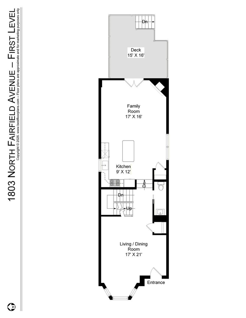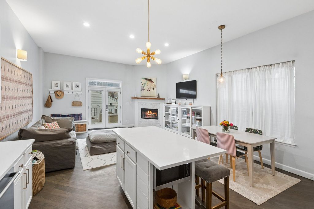 Fantastic single-family home on a picturesque, tree-lined street in the heart of prime Logan Square, just steps from the 606! This beautifully updated home offers an ideal open-concept main level filled with natural light, featuring an inviting sun-drenched living room with soaring vaulted ceilings, a modern updated white kitchen, and a spacious family room with dedicated dining area, pantry, fireplace, and beautiful hardwood flooring throughout. Seamlessly extending from the main living space, step out onto an expansive deck overlooking a rare, true backyard with lush grass-perfect for entertaining, summer gatherings, and everyday outdoor living. A two-car garage adds convenience and functionality. A striking center-entry staircase with skylight leads to the second level, where you'll find three generously sized bedrooms. The exceptional primary suite is a true retreat, showcasing vaulted cathedral ceilings, a beautiful bay window, a walk-in closet, and a fully gut-renovated en-suite bath complete with skylight. The finished lower level offers incredible additional living space, including a large family room with a built-in bar, gas fireplace, a spacious fourth bedroom, and a full bathroom-ideal for guests, office space, or flexible living arrangements. Unbeatable location with easy access to the 606, Blue Line, and Logan Square's vibrant dining scene, coffee shops, breweries, boutiques, and more-this is city living at its finest!