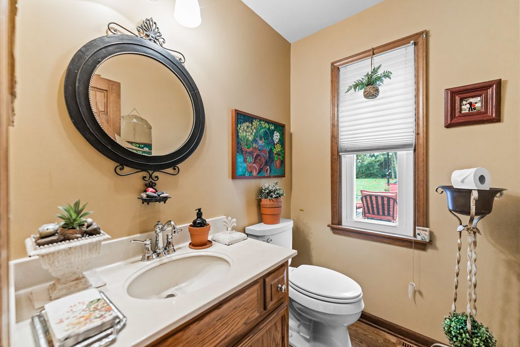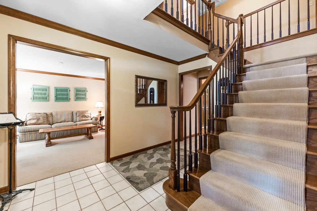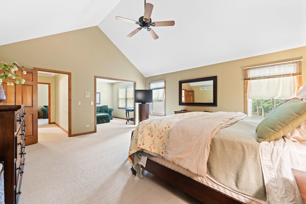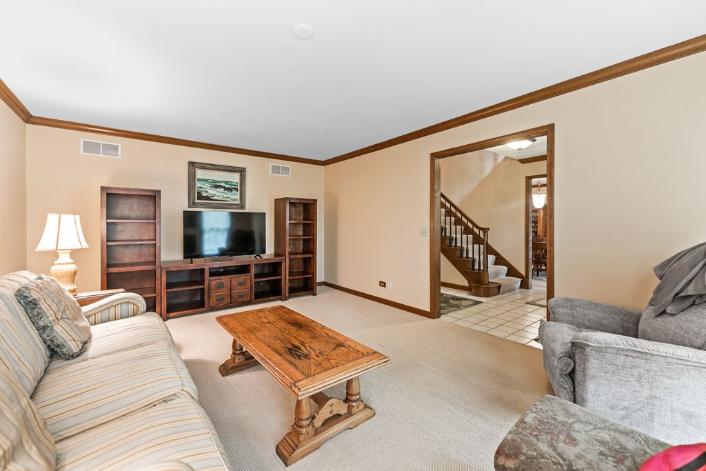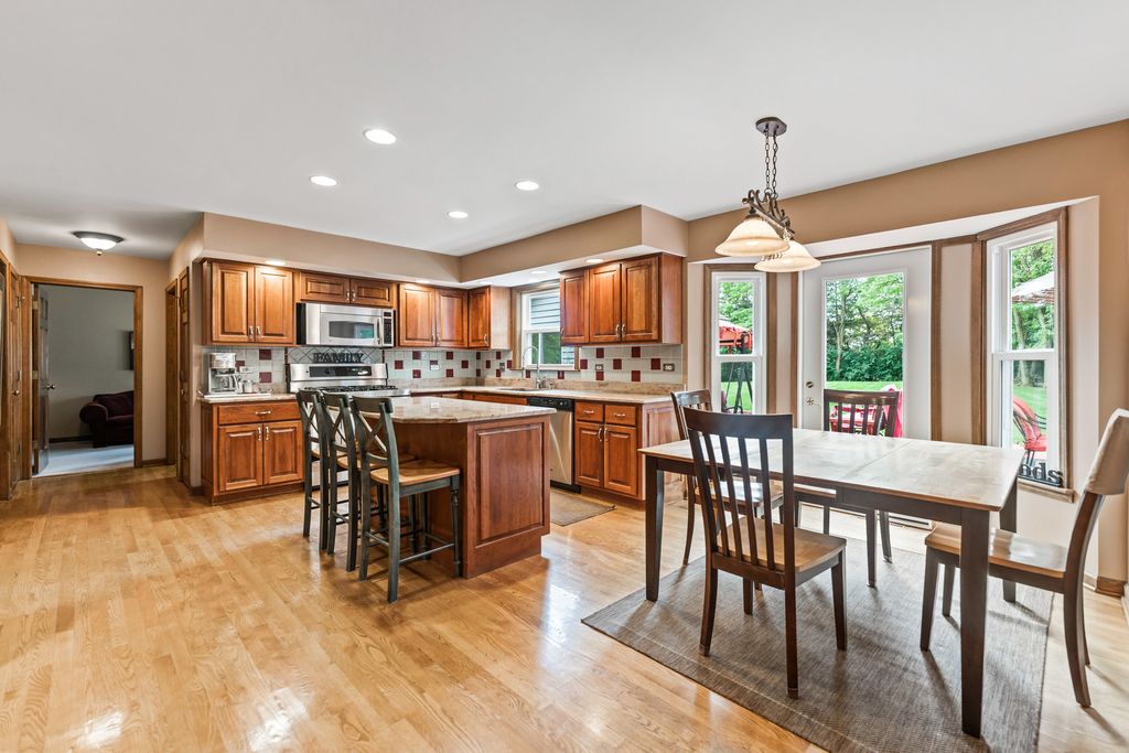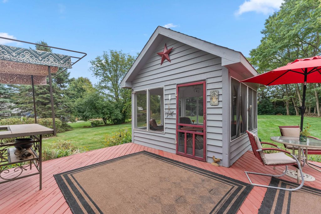 Welcome to this beautifully maintained and spacious 5-bedroom home, ideally situated in the highly desirable Deer Run Creek neighborhood of St. Charles. Nestled on a stunning 1.29-acre lot surrounded by mature trees and a peaceful natural setting, this property offers the perfect blend of privacy, comfort, and curb appeal. Step inside to find hardwood flooring throughout the main level and an inviting open-concept layout designed for both everyday living and entertaining. The kitchen features rich cherry cabinetry, granite countertops, and stainless steel appliances, seamlessly connecting to the eating area and cozy family room. A formal living room and dining room provide additional gathering space, while a versatile main-floor bedroom or den offers flexibility for guests or a home office. The main-level laundry room includes a utility sink and exterior service door for added convenience. Upstairs, the expansive primary suite is a true retreat, complete with a sitting area, dual walk-in closets, and a spa-inspired ensuite bath. Three additional generously sized bedrooms and a full bath complete the second level. The partially finished basement expands your living space with luxury vinyl plank flooring, a bathroom, and a second kitchen option-ideal for entertaining, extended living, or a variety of lifestyle needs-plus ample storage throughout. Enjoy outdoor living at its finest with a large deck and screened-in patio, perfect for relaxing or hosting gatherings while taking in the serene surroundings. Recent updates include newer windows, roof (2018), two newer furnaces, and zoned heating and cooling for optimal efficiency. A 2-car garage completes this exceptional property in a prime location.