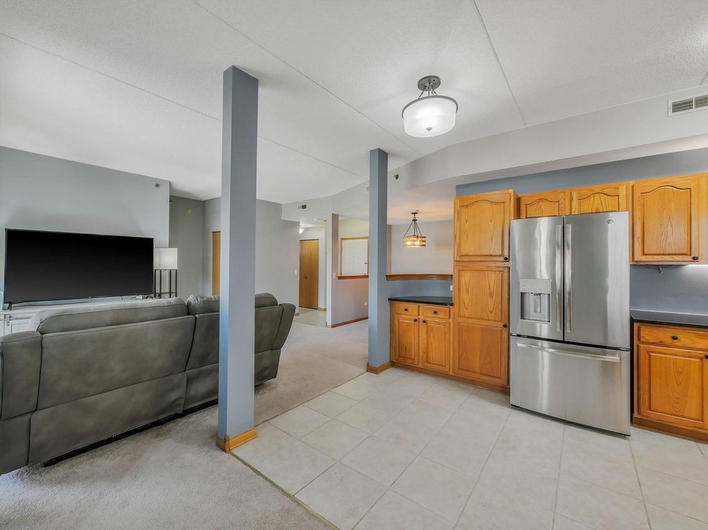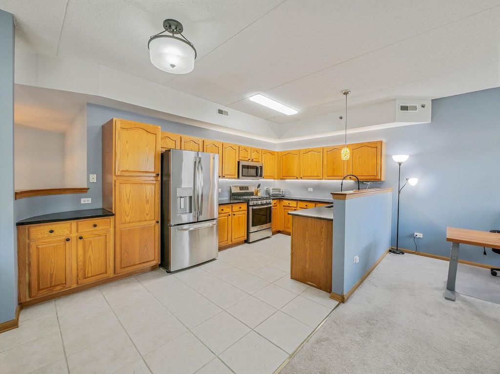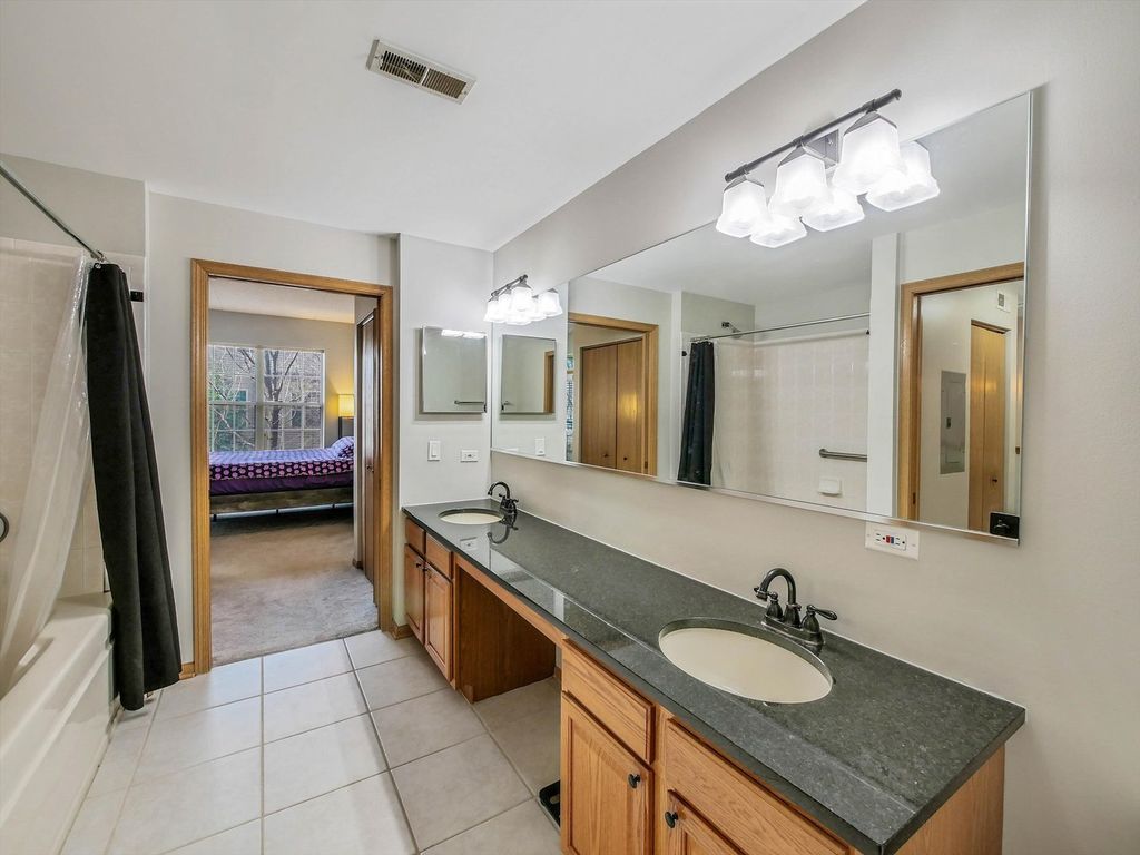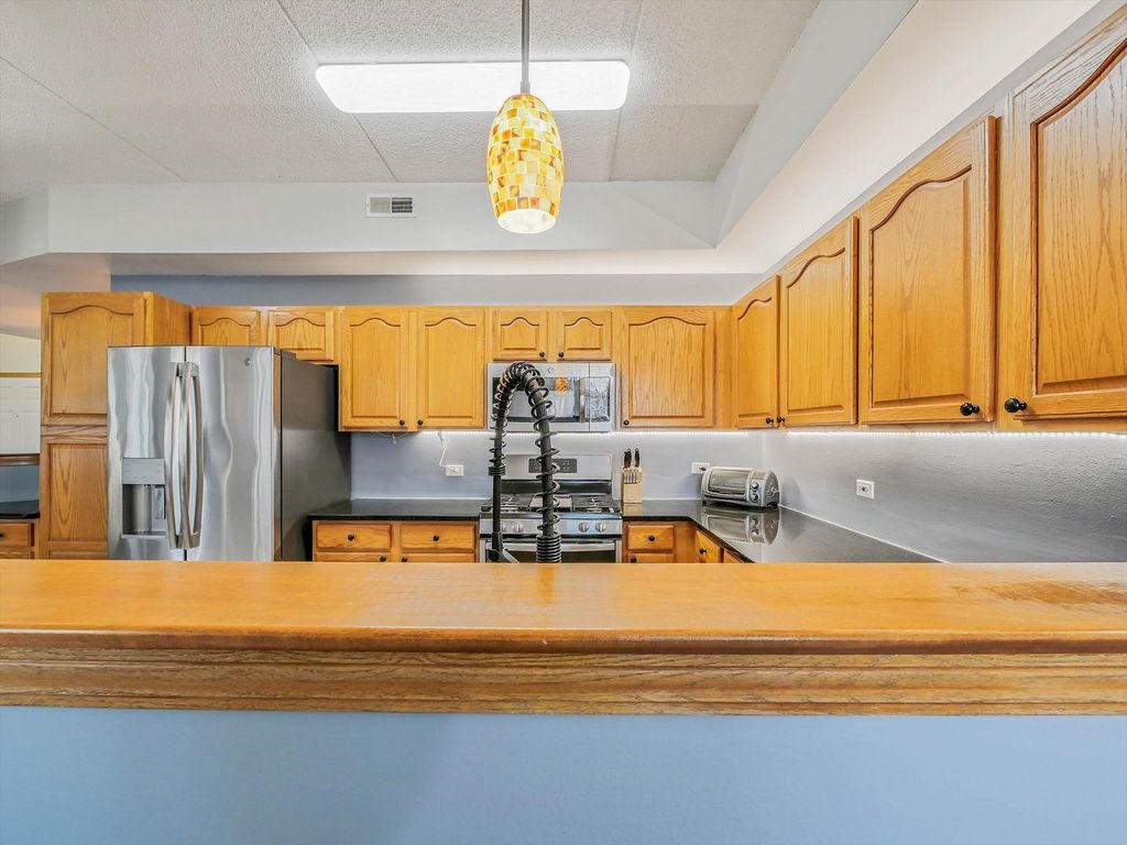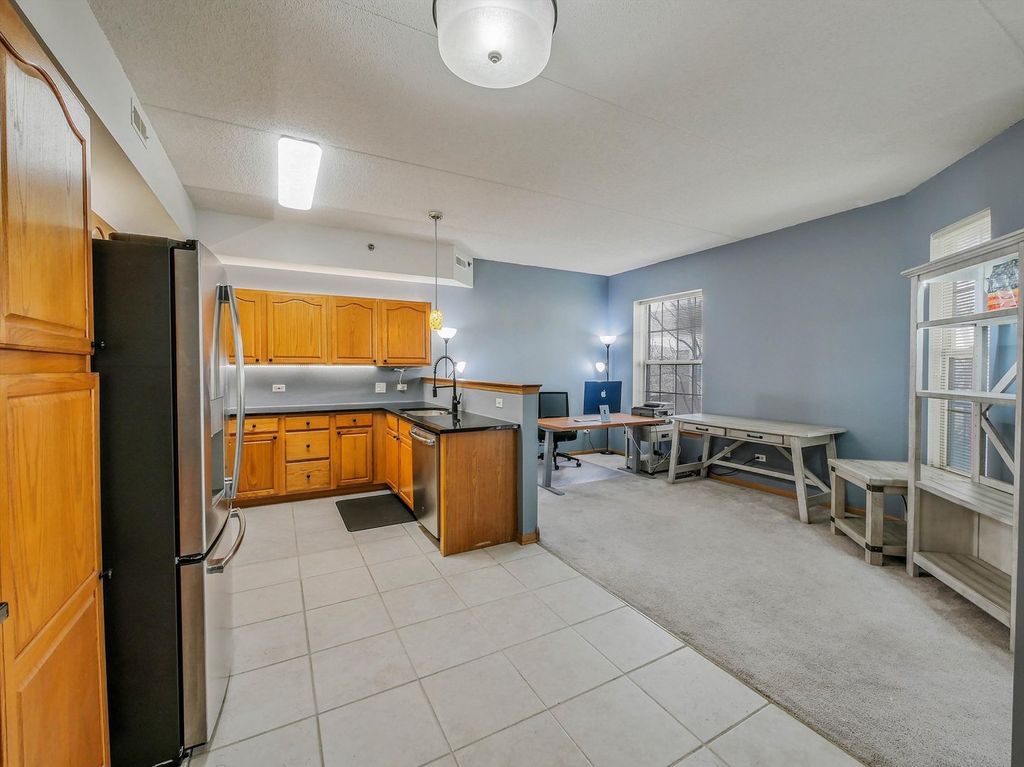 In a market saturated with compact one-bedroom layouts, this is something altogether different. Welcome to one of only eight residences of its kind in the entire Kimball Square community - a rarely available Ames model offering over 1,200 square feet of refined, open living. With just two of these expansive one-bedroom homes per building - and only four buildings total - opportunities here are uncommon and fleeting. Positioned on the elevated first residential level (above the secured entry and garage), this home offers both convenience and privacy. Inside, the residence unfolds with an effortless sense of scale and serenity. Nine-foot ceilings and an expansive open floor plan create a light-filled atmosphere rarely found in one-bedroom homes. A gracious living and dining area flows seamlessly into the modern kitchen, complete with granite countertops, stainless steel appliances - equal parts functionality and understated elegance. The primary suite is generously proportioned and has 2 closets. It is anchored by an impressive bath featuring a double vanity and abundant space - a luxury seldom found in this category. In-unit laundry with full-sized washer and dryer (installed Summer 2025) adds daily convenience. A new garbage disposal (February 2026) and a well-maintained HVAC system (AC installed 2019, regularly serviced) reflect conscientious ownership. Western exposure fills the private balcony with warm afternoon light, overlooking mature trees and offering a quiet retreat at day's end - sunsets included. Additional features include: * Heated garage parking with assigned space * Private storage locker * Secure, pet-friendly building * Professionally managed community * Walkable access to library, grocery, dining, parks, Pickleball courts and trails * Immediate access to IL-53, I-90, I-290, and I-355 - if the Chicago Bears move to Arlington Heights, you'd be minutes away! Kimball Square is a community where residents tend to stay - a testament to its comfort, location and design. For those seeking space without excess, privacy without isolation, and a home that lives well beyond its bedroom count, this offering stands apart. A refined primary residence. An ideal executive retreat. A rare opportunity.