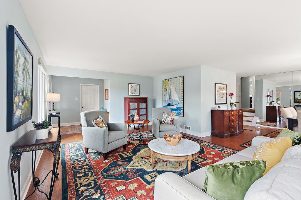 Absolutely spectacular in every way, this custom 3-step ranch with an expansive, thoughtfully designed layout in sought-after Caro Vista is a home that truly lives beautifully. From the moment you step inside, the spaces unfold with ease, beginning with a stunning updated kitchen featuring Cambria quartz, custom cabinetry, stainless steel appliances, island, coffee bar, pantry, and a bright breakfast nook. A pocket door off the kitchen adds both function and flexibility, while French doors open to an oversized family room with fireplace, creating a warm and inviting space for both everyday living and entertaining. A separate reading nook adds additional versatility. A spacious formal living room and dining room provide the perfect setting for gatherings. Just a few steps up, you will find three generously sized bedrooms and beautifully updated baths, including a primary suite with walk-in closet and private bath. The finished basement offers additional living space with a recreation area, office space, finished laundry room, and ample storage. The outdoor space is equally inviting, with a fully fenced yard featuring a maintenance-free composite deck, stone patio and stone pathways, and lush perennials designed to be enjoyed season after season. Additional improvements and features include newer hardwood floors throughout with upgraded baseboards, custom window treatments, new double oven, updated refrigerator and dishwasher, epoxy-coated oversized 2.5-car garage, and battery backup sump pump. Roof and Hurd windows approximately 13 years old. Set in a quiet, established neighborhood and located within the highly regarded Carl Sandburg High School district, this home offers both comfort and lasting quality.