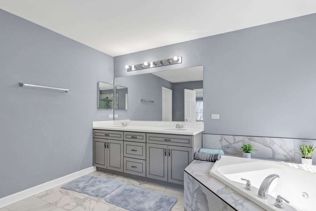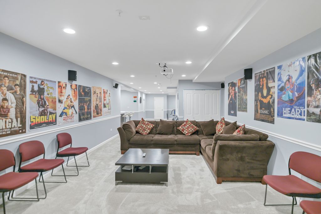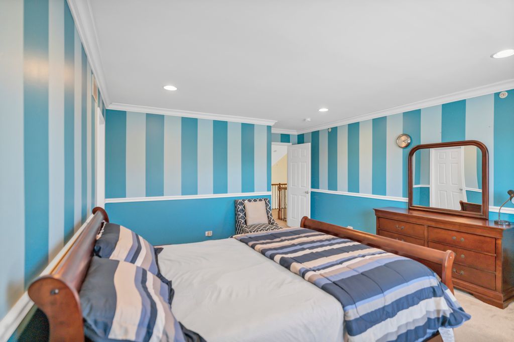 Beautifully updated brick home offering exceptional space, modern upgrades, and a highly functional layout in a sought-after Hoffman Estates neighborhood. A dramatic 2story foyer welcomes you into elegant formal living and dining rooms with crown molding, wainscoting, and recessed lighting. The kitchen features 42" cherry cabinets, granite countertops, stainless steel appliances, a large island, pantry, and an eating area with direct access to the backyard. The impressive 2story family room showcases a cozy fireplace, abundant natural light, and a built-in 5 speaker stereo system with subwoofers-perfect for movie nights or entertaining. The main level also includes a spacious office, laundry room, and powder room. Upstairs, the home offers four generous bedrooms, including a luxurious primary suite with double door entry, dual Walkin closets, tray ceiling, and a spa inspired bath with whirlpool tub and separate shower. And full hall bath serves the additional bedrooms. The fully finished basement is designed for entertainment and lifestyle flexibility, featuring a dedicated gym area, bar, and a theater ready media space. A full bath and finished storage room add convenience and functionality. Step outside to a backyard built for summer gatherings, complete with a brick paver patio and gazebo. Major updates include a new roof (2023) and new AC (2024). A standout feature of this home is the built-in interior fire suppression sprinkler system, providing an added layer of safety and peace of mind rarely found in residential properties. Conveniently located near shopping, dining, parks, trails, entertainment, and with quick access to I90, this home delivers comfort, style, and move-in ready appeal.