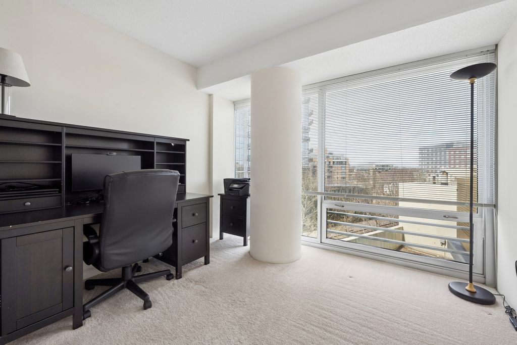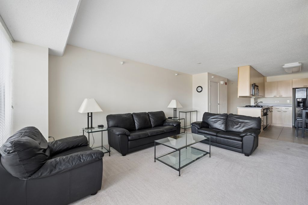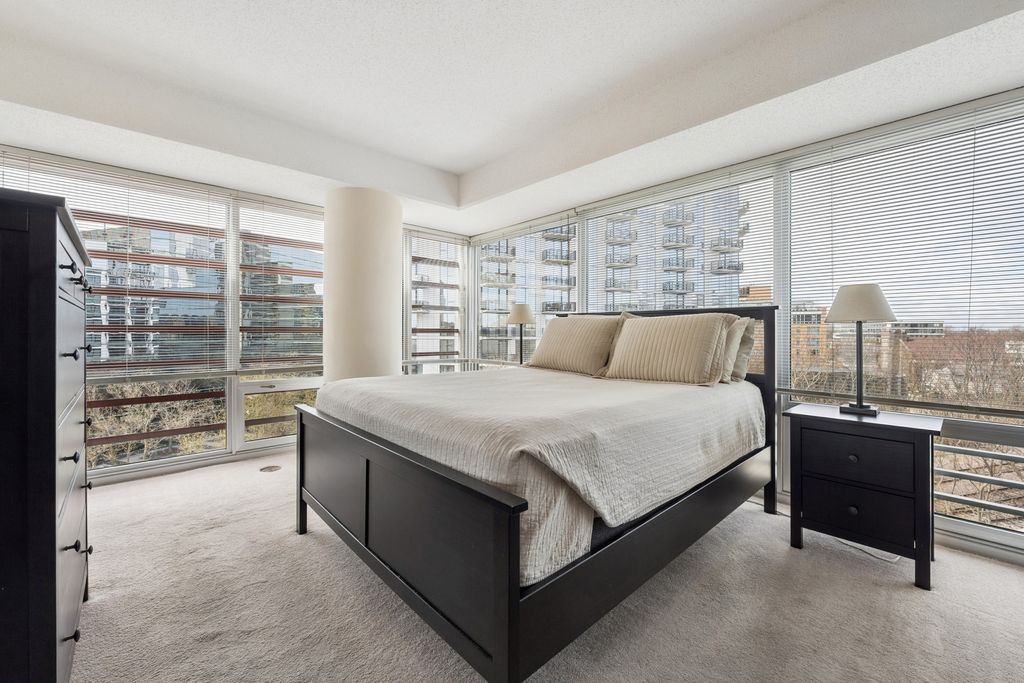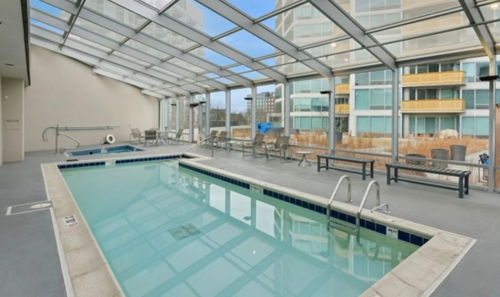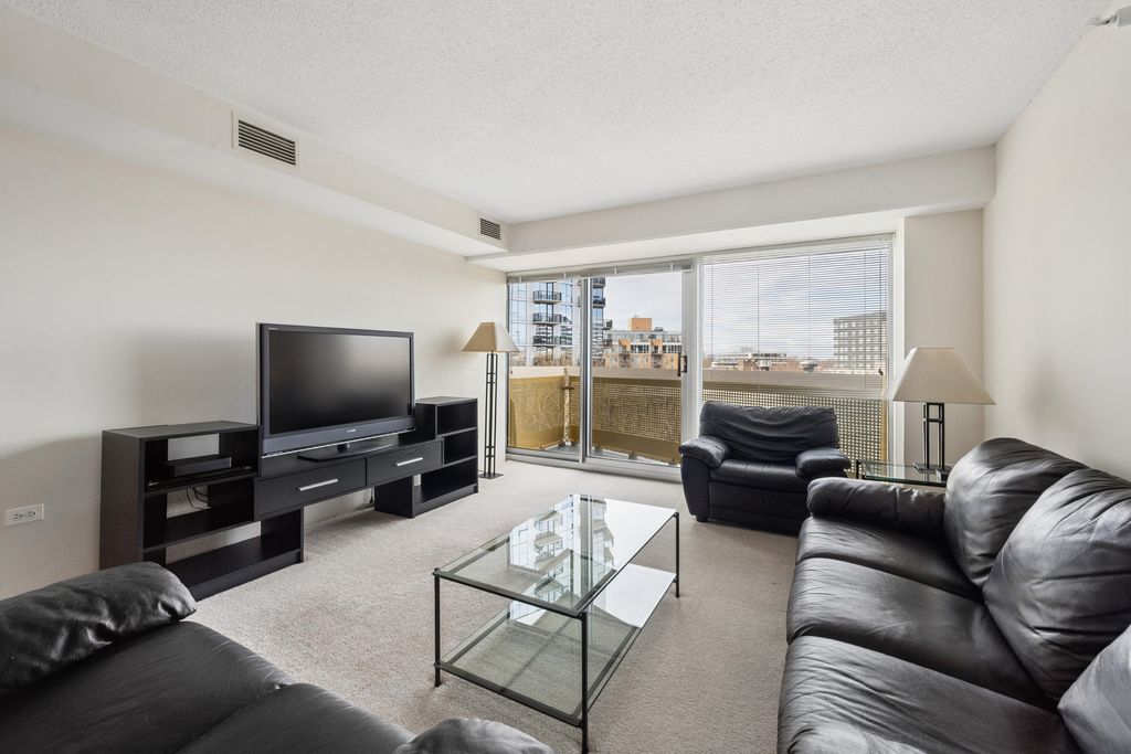 Exceptional value for this sunny and bright corner unit in super clean move-in condition! Excellent efficient floor plan with spacious foyer, large eat-in kitchen. Full size in unit laundry, garage parking included, monthly assessment includes heat and central air. Amazing floor-to-ceiling windows, balcony off living room. Quiet end-of-hall location. Building amenities include 24/7 door person, swimming pool, and fitness center. Perfect downtown Evanston location near Metra and El, shopping, restaurants, movie theater and Northwestern University.