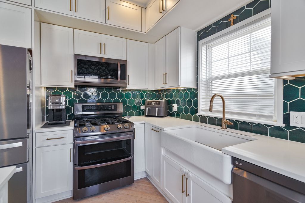 Beautifully updated 3 bed, 3.1 bath single-family home on charming, tree-lined Wilmot Street in the heart of Bucktown. Bright and spacious floor plan with modern updates, all just steps from top restaurants, shopping, nightlife, and the 606 Trail! A fenced yard and welcoming front porch extend the living space outdoors. Inside, the sun-filled living and dining area features a wood-burning fireplace, custom built-ins, and great natural light. The eat-in kitchen is thoughtfully designed with classic white shaker cabinetry, under-cabinet lighting, quartz countertops, a hexagon tile backsplash, farmhouse sink, stainless steel appliances including new fridge, peninsula with bar seating, and a greenhouse window. The adjacent breakfast nook adds personality with statement wallpaper and opens to the rear deck. The powder room is nicely updated with good storage. Upstairs, you'll find three bedrooms, including a spacious primary suite with all new bath, along with a Jack-and-Jill bath for the second and third bedrooms. The finished lower level offers a generous family room, full bath, laundry area with new washer/dryer, sink, storage, and access to the backyard. Enjoy outdoor living with a rear deck, turfed yard, and a detached two-car garage equipped with upgraded electric for EV charging. Turn-key home with numerous recent updates and thoughtful design touches throughout.